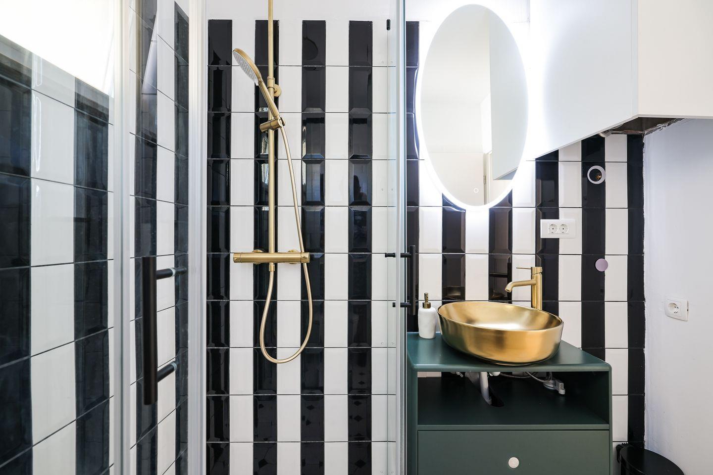 Das Badezimmer besticht durch moderne Ausstattung und großzügiges Design: Es verfügt über eine elegante Walk-in-Dusche, ein WC und stilvolle Details, die für zusätzlichen Komfort sorgen. Insgesamt verbindet diese Unterkunft modernes Wohnen mit einer behaglichen Atmosphäre – ideal für einen entspannten Urlaub.