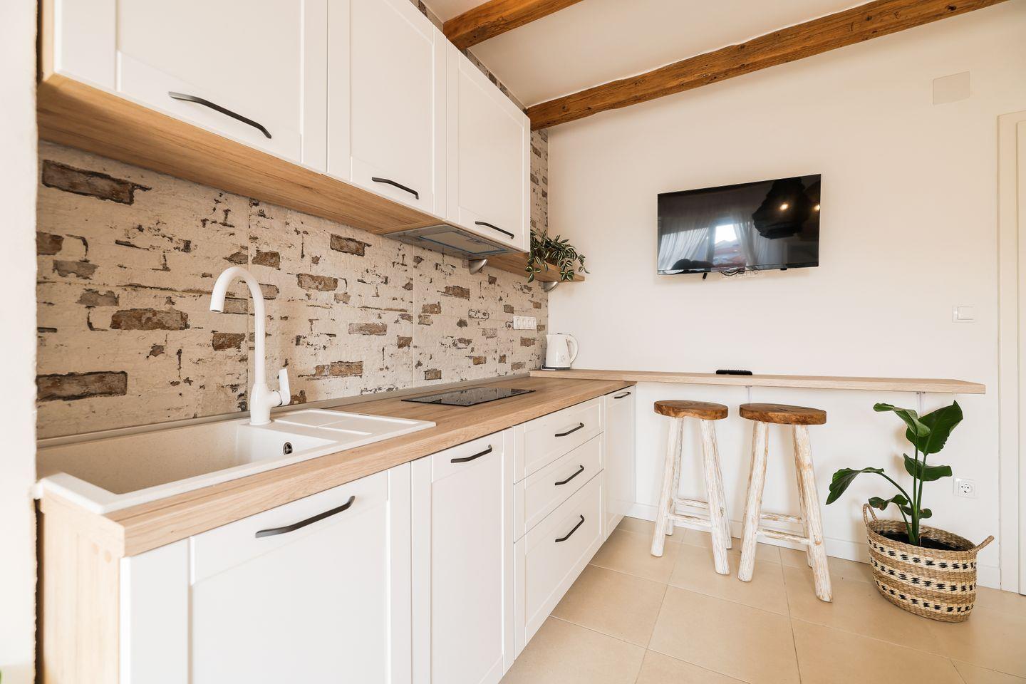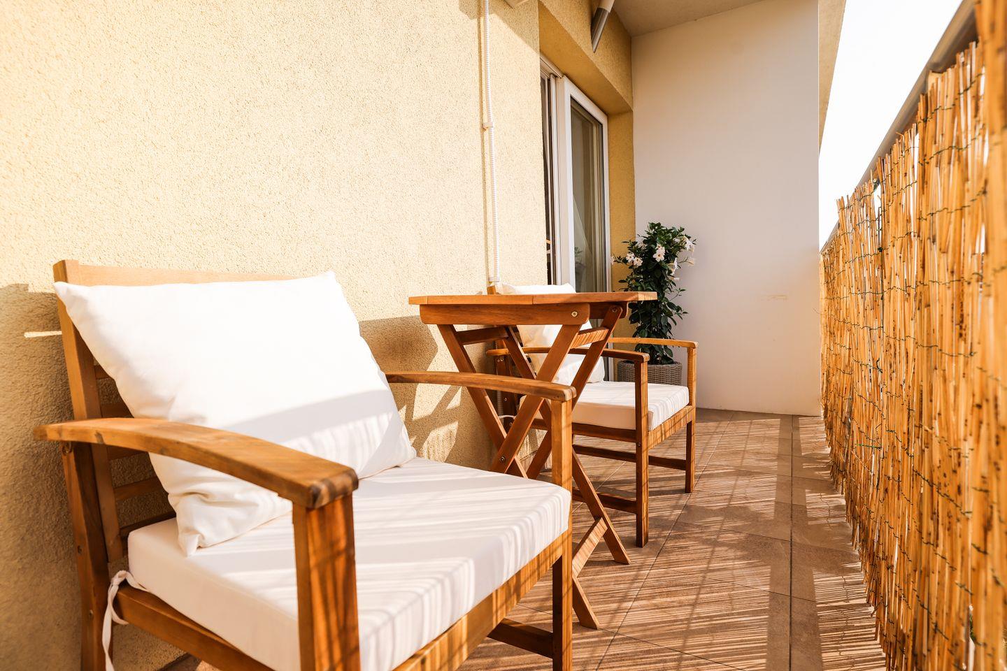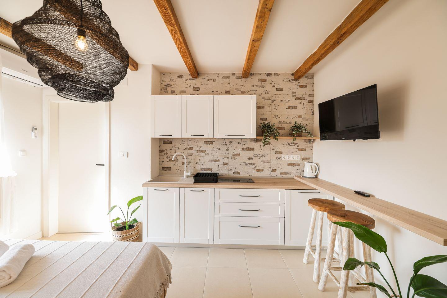 Gemütliches Studio mit Balkon und moderner Ausstattung. Das 23 m² große Studio im 1. Stock bietet eine voll ausgestattete Küche, ein komfortables Doppelbett, TV, WLAN und Klimaanlage. Das Badezimmer verfügt über eine Walk-in-Dusche. Haustiere sind nicht erlaubt.