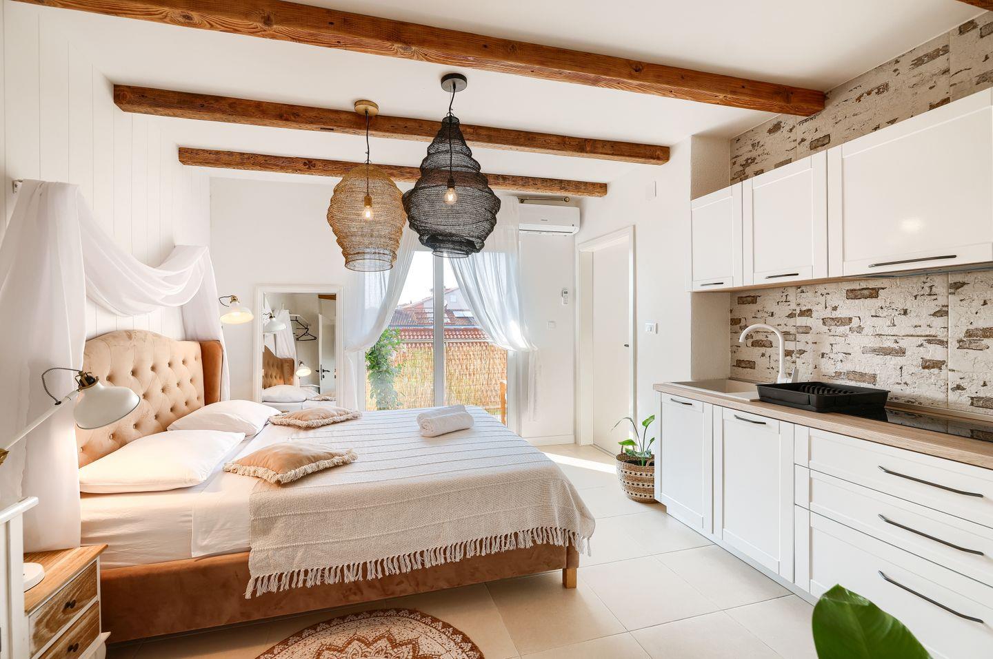 Das gemütliche Studio befindet sich im 1. Stock und bietet auf 23 m² eine voll ausgestattete Küche, ein komfortables Doppelbett sowie einen Balkon, auf dem Sie entspannen können. Zur weiteren Ausstattung gehören TV, WLAN und Klimaanlage, die für höchsten Komfort und beste Unterhaltung sorgen – ideal, um auch im Urlaub flexibel und gut versorgt zu sein. Das moderne Badezimmer ist mit einer Walk-in-Dusche und einem WC ausgestattet und rundet das Wohlfühlpaket ab. Ob für einen entspannten Urlaub oder eine praktische Unterkunft auf Geschäftsreisen – hier finden Sie alles, was Sie brauchen, um sich rundum wohlzufühlen. Wir bitten um Ihr Verständnis, dass Haustiere in diesem Studio nicht gestattet sind.
