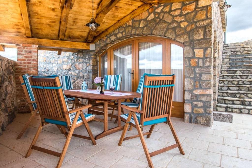 3000 m² havegrund! Denne smukke og smagfuldt indrettede "Robinson" villa ligger i den lille landsby Risika. Fra den store haveterrasse, hvor swimmingpoolen også ligger, har du en storslået panoramaudsigt over Crikvenica, Senj og Novi Vinodolski. Slap af i denne lille oase. Huset har en stor grund, hvor poolen og solpanelerne er placeret, hvilket betyder, at det er et miljøvenligt hus, da det får sin energi fra sin egen strømkilde. En uundværlig grill er også til din rådighed.