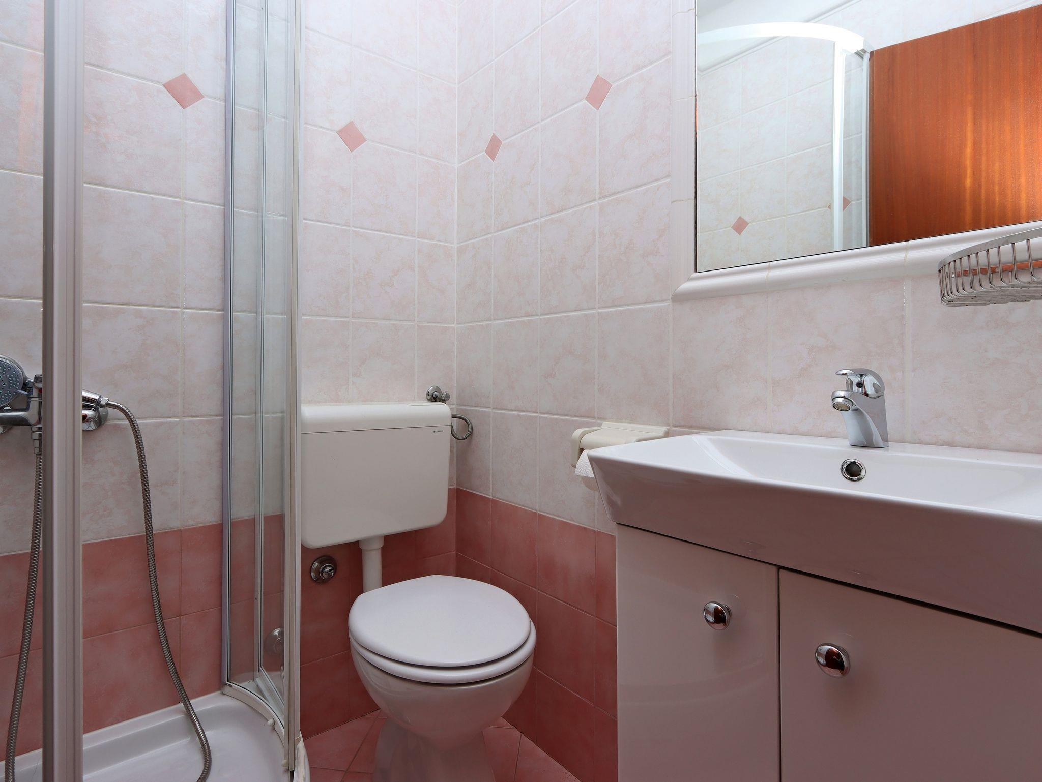 Zimmer bietet Platz für 2 Gäste. Die Betten sind in Schlafzimmern, die es 1 gibt, innerhalb einer Gesamtfläche von 18m2, angeordnet. Die Gäste haben eine eigene Terrasse zur Verfügung, auf der sie in warmen Sommernächten genießen können. Das Zimmer bietet Meerblick. Es ist erlaubt, Speisen auf dem Gemeinschafts-Grill vorzubereiten. Die reservierte Unterkunftseinheit ist ein Zimmer mit eigenem Badezimmer ohne die Möglichkeit der Nutzung einer Küche. IM PREIS INBEGRIFFEN: Kurtaxe, Endreinigung, Zentralheizung, Parkplatz, Internet, Bügeleisen, Bügelbrett, Föhn. VERBINDLICHE ZUSÄTZLICHE KOSTEN: Aufzahlung für Kurzaufenthalte (prozentualer Zuschlag pro Nächtigungsanzahl: 30% - 1, 20% - 2, 10% - 3). UNVERBINDLICHE ZUSÄTZLICHE KOSTEN: Klimatisierung (7,00 € pro Nacht), Wäschewaschen (10,00 € Waschen). Die Verfügbarkeit zusätzlicher Dienstleistungen in Ihrem reservierten Termin und die Preise derselben (falls nicht aufgeführt) müssen im Voraus überprüft werden. Zusätzliche Dienstleistungen die in der Zahlungsaufforderung nicht aufgeführt sind werden direkt beim Vermieter bezahlt, angenommen der Gast nutzt auch diese.