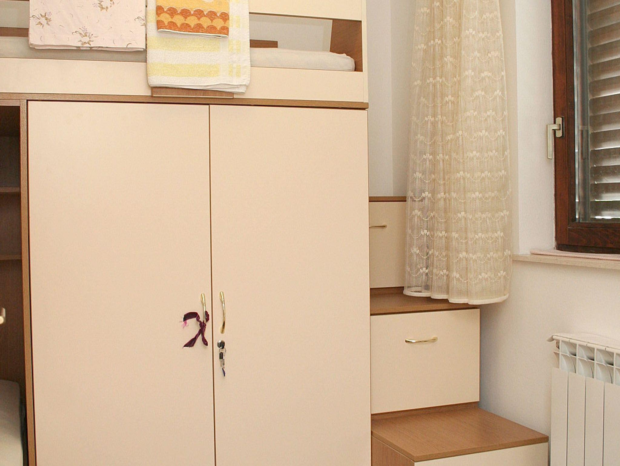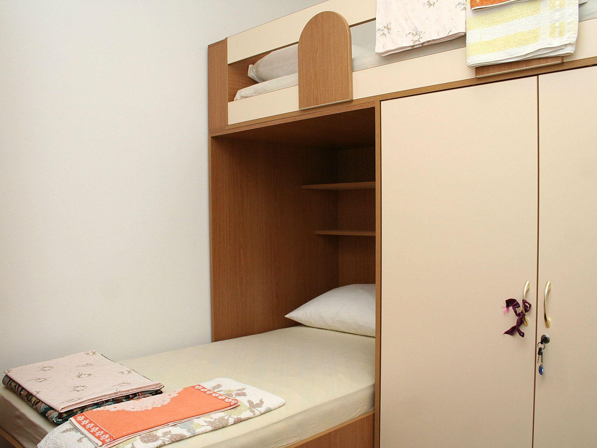 Ferienwohnung bietet Platz für 6 Gäste. Die Betten sind in Schlafzimmern, die es 3 gibt, innerhalb einer Gesamtfläche von 94m2, angeordnet. Die Gäste haben eine eigene Terrasse zur Verfügung, auf der sie in warmen Sommernächten genießen können. Es ist erlaubt, Speisen auf dem Gemeinschafts-Grill vorzubereiten. In der Unterkunftseinheit besteht die Möglichkeit des Mitbringens von Haustieren gegen Aufpreis. IM PREIS INBEGRIFFEN: Kurtaxe, Endreinigung, Klimatisierung, Parkplatz, Internet, Kinderbett, Bügeleisen, Bügelbrett, Föhn, tragbarer Grill. VERBINDLICHE ZUSÄTZLICHE KOSTEN: Aufzahlung für Kurzaufenthalte (prozentualer Zuschlag pro Nächtigungsanzahl: 30% - 1, 20% - 2, 10% - 3). UNVERBINDLICHE ZUSÄTZLICHE KOSTEN: Haustiere (5,00 € pro Nacht). Die Verfügbarkeit zusätzlicher Dienstleistungen in Ihrem reservierten Termin und die Preise derselben (falls nicht aufgeführt) müssen im Voraus überprüft werden. Zusätzliche Dienstleistungen die in der Zahlungsaufforderung nicht aufgeführt sind werden direkt beim Vermieter bezahlt, angenommen der Gast nutzt auch diese.