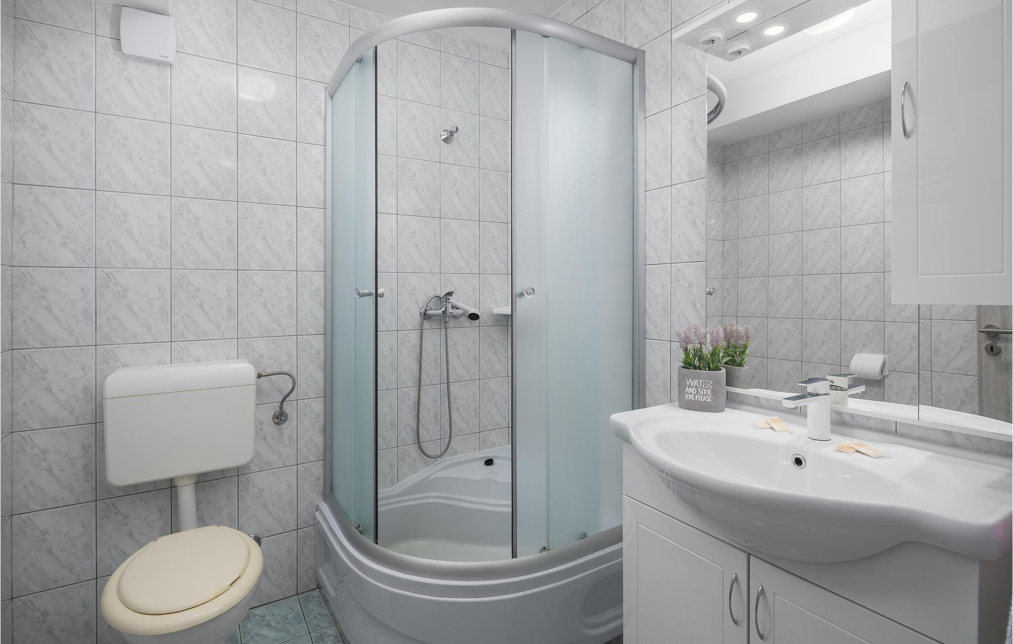 Badeværelse (nr. 1) - WC. Varmt og koldt vand. Bruser