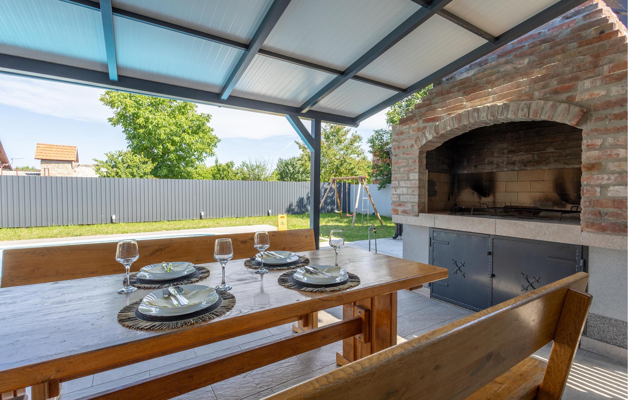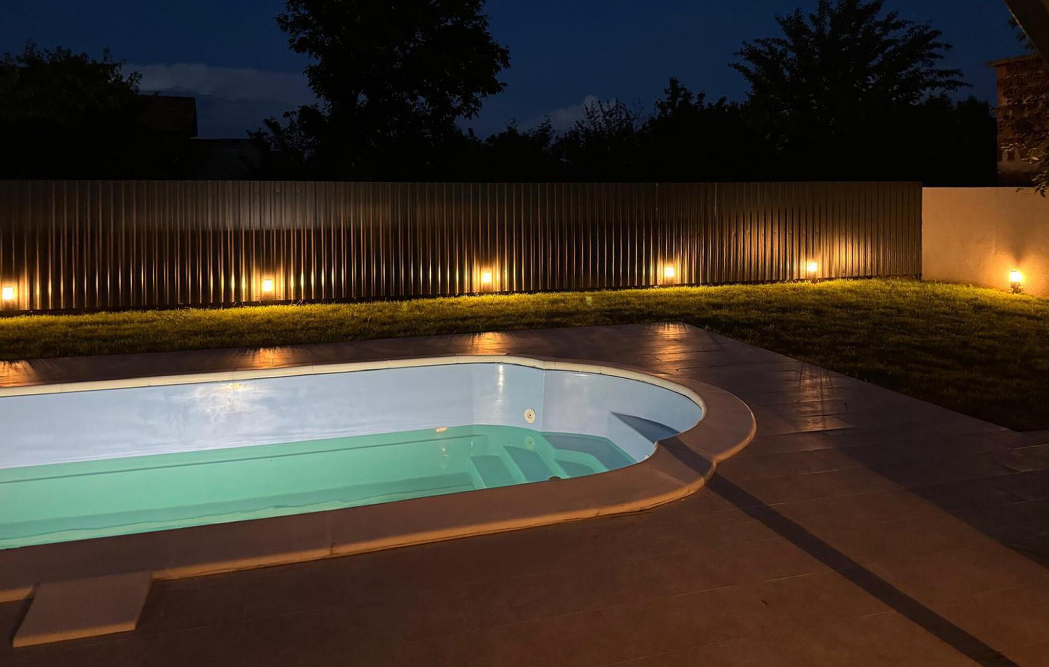 Server en lækker morgenmad på jeres skyggefulde terrasse om morgenen. Svøm afslappende baner i poolen, før børnene tager den med ud på et plask og en legeplads, og kig op på den dybblå himmel, mens I slapper af på liggestolen. Takket være hyggelig belysning inviterer poolen jer til en dukkert i solen, selv på varme sommernætter.