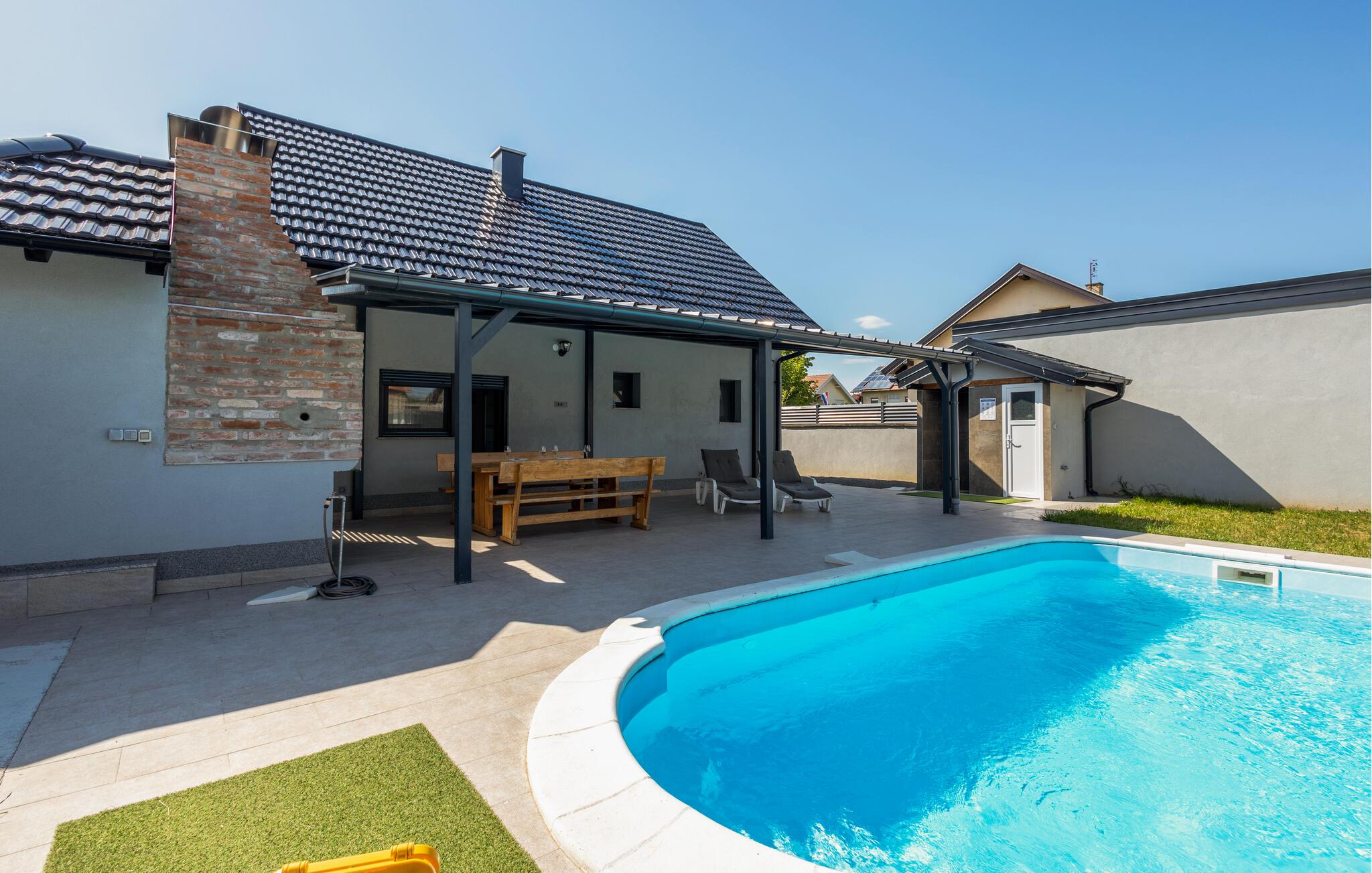 Glæd jer til nogle afslappende dage i dette komfortable feriehus med pool, og glæd jer til adskillige ekstrafunktioner.