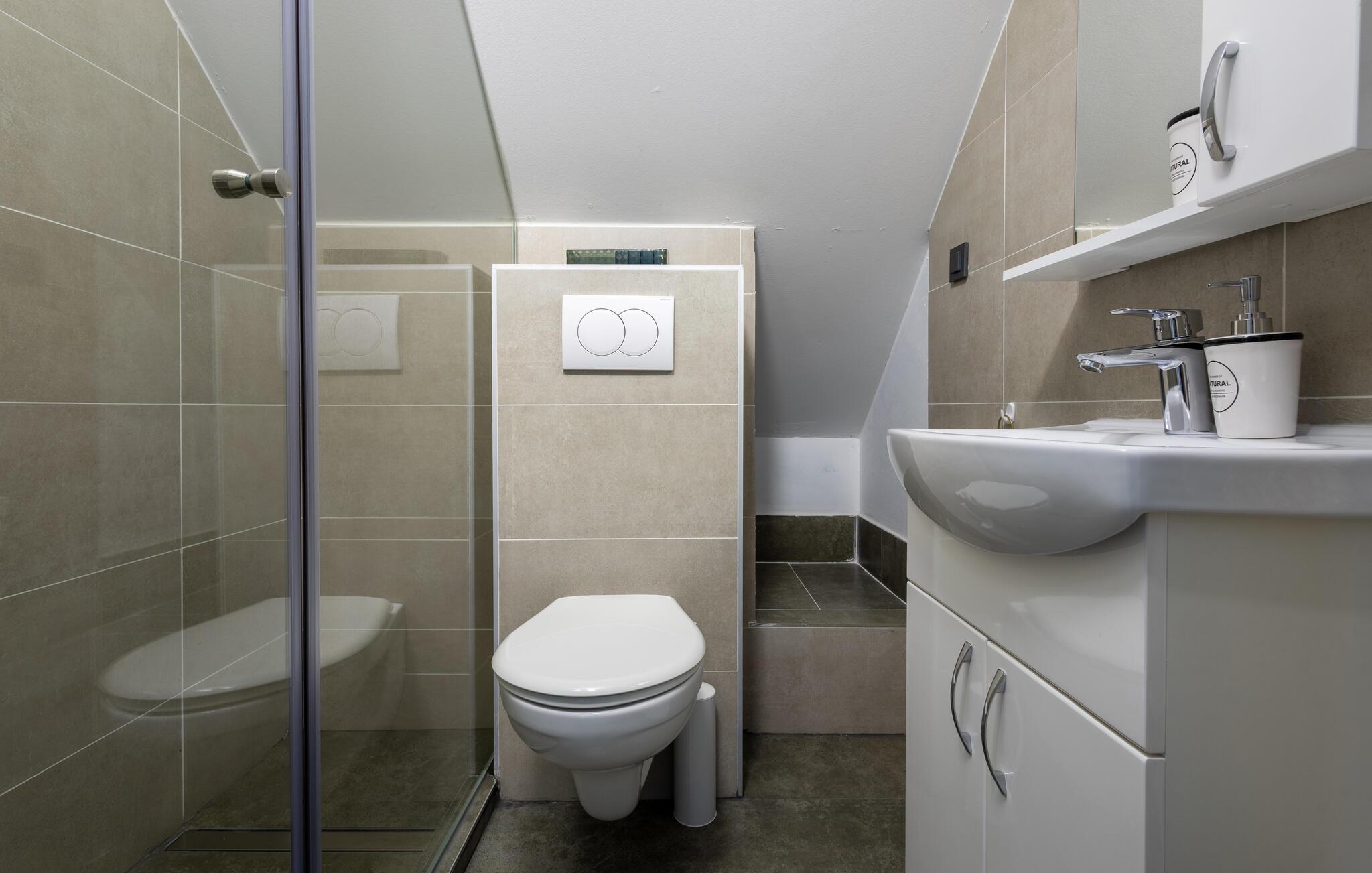 Badeværelse 5m2 (nr. 2) - WC. Varmt og koldt vand. Bruser