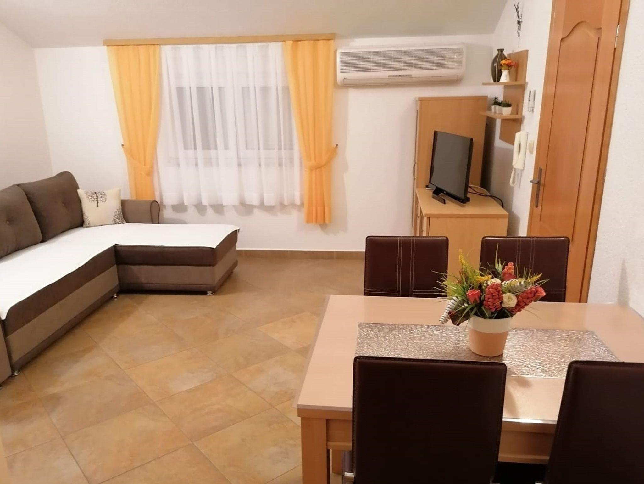 Ferienwohnung bietet Platz für 5 Gäste. Die Betten sind in Schlafzimmern, die es 1 gibt, und in Wohnzimmer, innerhalb einer Gesamtfläche von 35m2, angeordnet. Die Gäste haben einen eigenen Balkon zur Verfügung, auf der sie in warmen Sommernächten genießen können. Das Apartment bietet Meerblick. Es ist erlaubt, Speisen auf dem Gemeinschafts-Grill vorzubereiten. IM PREIS INBEGRIFFEN: Kurtaxe, Endreinigung, Klimatisierung, Parkplatz, Internet, Föhn. Die Verfügbarkeit zusätzlicher Dienstleistungen in Ihrem reservierten Termin und die Preise derselben (falls nicht aufgeführt) müssen im Voraus überprüft werden. Zusätzliche Dienstleistungen die in der Zahlungsaufforderung nicht aufgeführt sind werden direkt beim Vermieter bezahlt, angenommen der Gast nutzt auch diese.