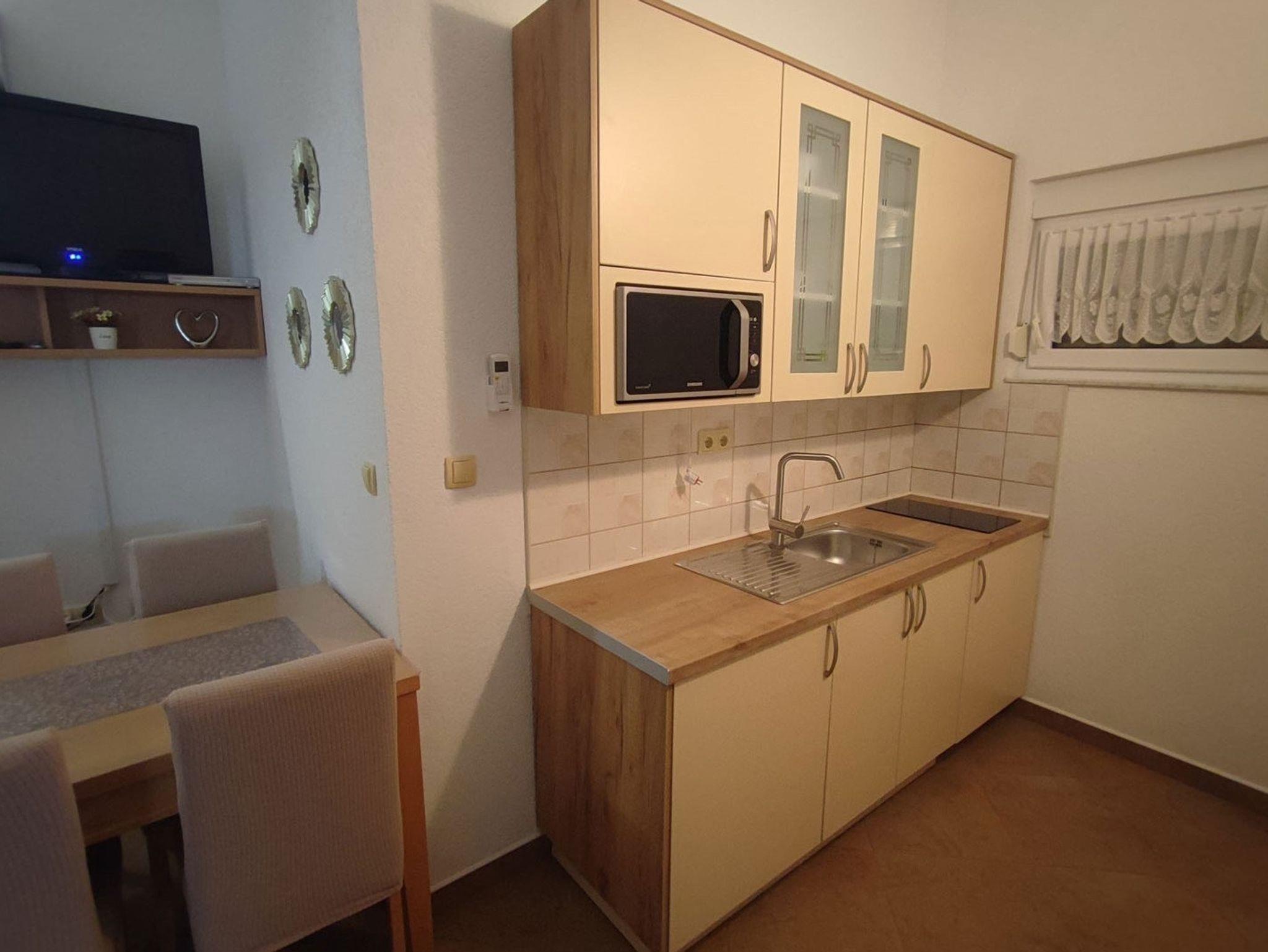 Ferienwohnung bietet Platz für 5 Gäste. Die Betten sind in Schlafzimmern, die es 2 gibt, innerhalb einer Gesamtfläche von 43m2, angeordnet. Die Gäste haben einen eigenen Balkon zur Verfügung, auf der sie in warmen Sommernächten genießen können. Das Apartment bietet Meerblick. Es ist erlaubt, Speisen auf dem Gemeinschafts-Grill vorzubereiten. IM PREIS INBEGRIFFEN: Kurtaxe, Endreinigung, Klimatisierung, Parkplatz, Internet, Föhn. Die Verfügbarkeit zusätzlicher Dienstleistungen in Ihrem reservierten Termin und die Preise derselben (falls nicht aufgeführt) müssen im Voraus überprüft werden. Zusätzliche Dienstleistungen die in der Zahlungsaufforderung nicht aufgeführt sind werden direkt beim Vermieter bezahlt, angenommen der Gast nutzt auch diese.