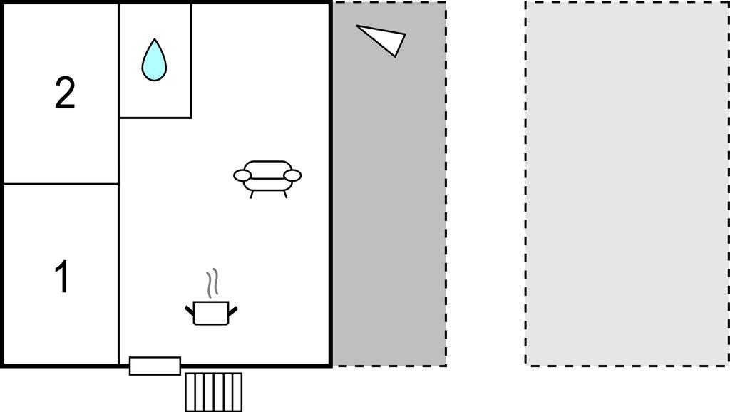 Opholdsstue/køkken 28m2 - 1 Soveplads. (Sofa, madras eller lignende).