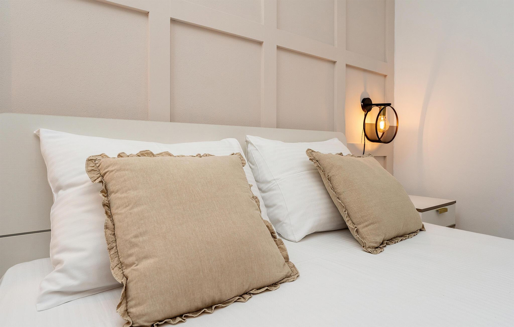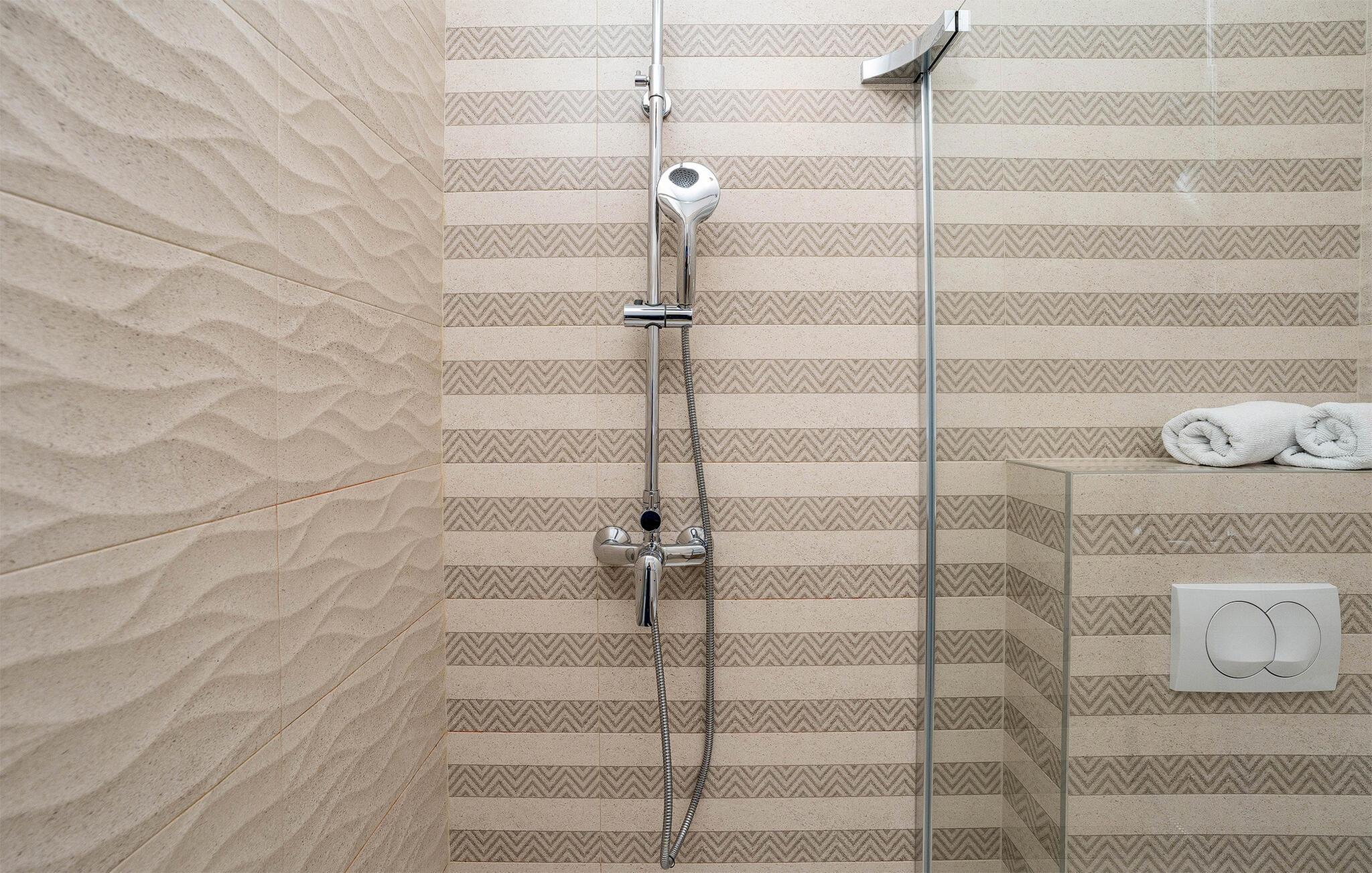 Velkommen til denne lejlighed, der ligger i smukke omgivelser lige ved stranden, og hvor I får det perfekte udgangspunkt for mange fine udflugter. Indretningen fremtræder moderne og komfortabelt med alt det, I behøver for at kunne slappe af før og efter dagens udflugter. Tilbered en lækker morgenmad i køkkenet og tag den med ud på terrassen, hvor I kan nyde solen og en god kop kaffe, mens I lægger planer for dagen. Når varmen er ved at få jer, kan I snuppe en frisk dukkert i den fælles pool, inden I begiver jer på tur.