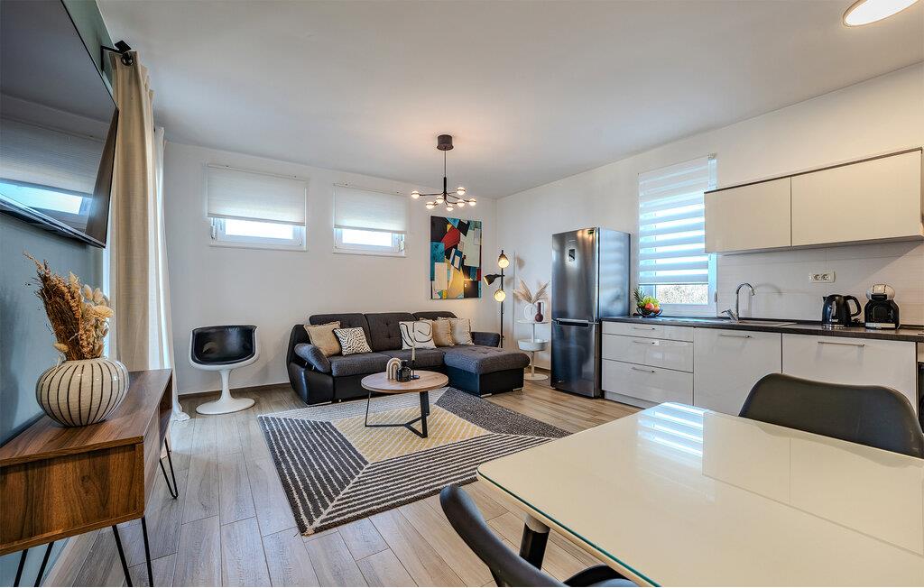 Tag familien under armen og rejs til Kroatien, hvor I i Bibinje lidt syd for Zadar får en skøn base i denne lækre lejlighed. Med sin gode beliggenhed ved stranden, sin flotte indretning og de mange moderne faciliteter får I her alt, I behøver for en magisk ferie med masser af sol og vand. Begynd dagen med en solid morgenmad, inden I tager til stranden eller på udflugt, og rund en aktiv feriedag af med en lækker aftensmad, sofahygge og udsigt til havet.
