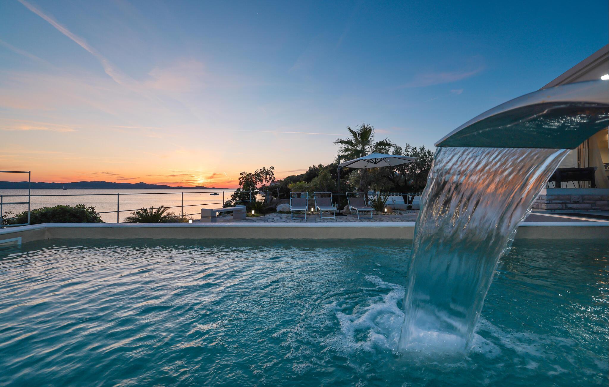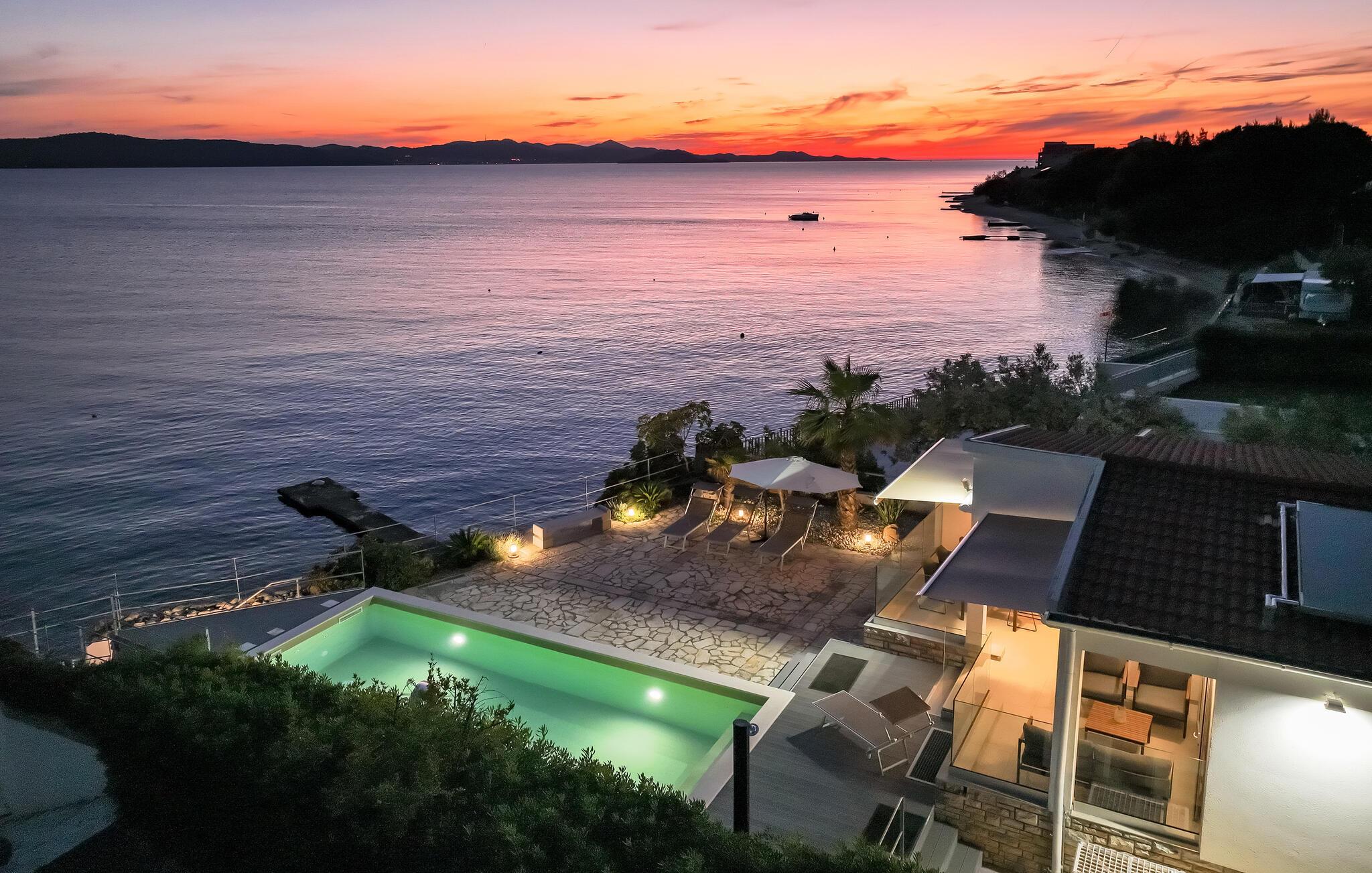 Velkommen til Dalmatien, hvor huset byder jer velkommen i en rolig beliggenhed direkte ved stranden. Her forenes høj standard med en afslappet middelhavsatmosfære. I kan se frem til en fantastisk tid i de moderne og smagfuldt indrettede rum, afslapning i den private sauna samt hyggelige aftener på sofaen, hvor I kan genopleve dagens oplevelser.