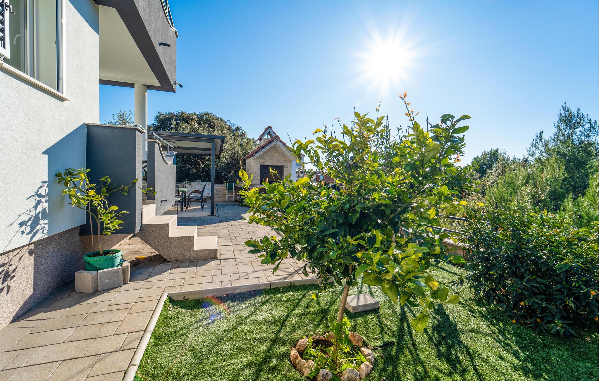 Den nærliggende strand er perfekt til afslappende timer ved havet, hvor I kan bade, sole og slappe af. Bibinje er kendt for sin rolige, familievenlige atmosfære og sin fantastiske kystbeliggenhed. Byen byder på smukke strande og en malerisk marina. Lokale restauranter serverer autentiske retter, og nærheden til Zadar giver jer mulighed for spændende udflugter – hvad enten det er til den gamle bydel eller til områdets øer. Gå ture langs kysten, tag på bådture eller slap af i haven – Bibinje er det ideelle udgangspunkt for en varieret ferie.