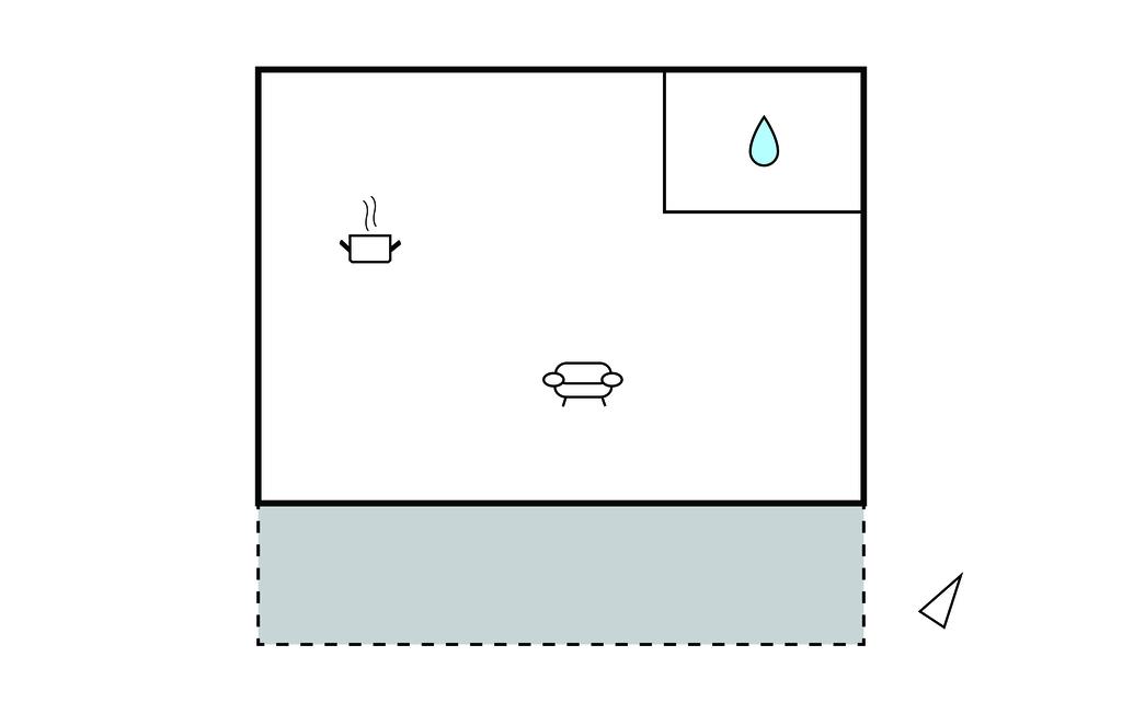 Komb. spisestue/køkken 25m2 - 2 Sovepladser. (Sofa, madras eller lignende).