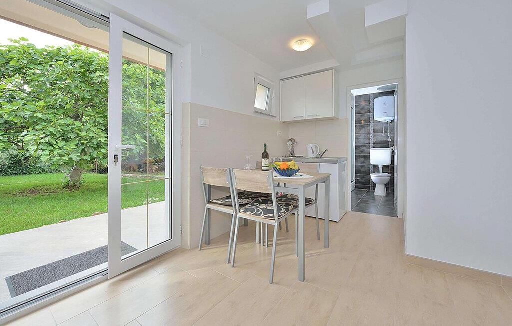 Oplev en afslappende ferie i denne smukke lejlighed nær stranden. Denne lyse, moderne lejlighed åbner direkte ud til haven og lukker masser af naturligt lys ind. De rene linjer og bløde farver skaber en rolig og indbydende atmosfære, hvor I vil føle jer hjemme. Her kan I slappe af med en snak, lytte til musik eller nyde en hyggelig aften med tv – præcis som en ferie skal være. Start dagen på terrassen med morgenmad og den beroligende udsigt til træerne i haven. Nyd den middelhavsagtige atmosfære og slap af med en kop kaffe og jeres yndlingsbog. Om aftenen kan I bruge den fælles grill til at tilberede en lækker middag. Havet ligger kun et stenkast væk og inviterer til forfriskende svømmeture og afslappende timer på stranden. Gå en tur gennem den charmerende kystby Bibinje, hvor hyggelige konobas (traditionelle taverner) og den lille havn udstråler et middelhavspræg. Tag en tur til den nærliggende by Zadar for at opleve dens imponerende gamle bydel, Havorglet og den berømte "Hilsen til Solen".