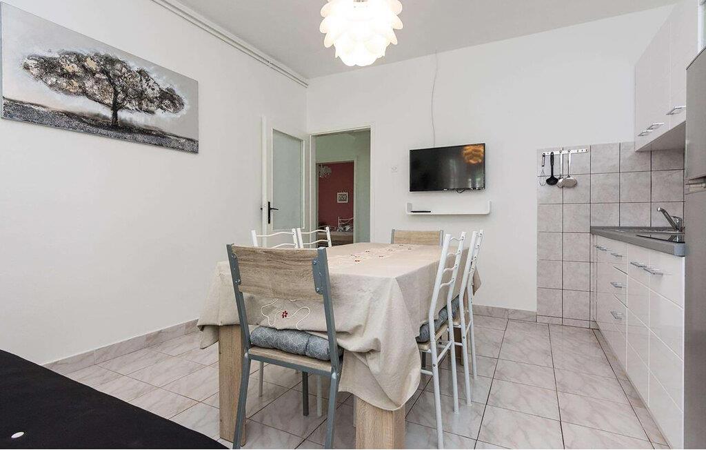 Nyd en afslappende ferie i denne praktiske ferielejlighed nær stranden. Denne lyse og indbydende lejlighed har et hyggeligt køkken, hvor morgenmaden ved spisebordet er en afslappet måde at starte dagen på. De hvide møbler og den varme belysning skaber en indbydende middelhavsatmosfære, der øjeblikkeligt bringer jer i feriestemning. Her kan I lave mad, nyde måltider og slappe af ved dagens slutning – præcis som en ferie skal være. Start dagen på terrassen og lad blikket vandre over landskabet. Nyd den blide brise fra det nærliggende hav og slap af med en kop kaffe og jeres yndlingsbog. Brug den fælles grill til at tilberede en lækker middag. Havet ligger kun et stenkast væk og inviterer til forfriskende svømmeture og afslappende timer på stranden. Gå en tur gennem den charmerende kystby Bibinje, hvor hyggelige konobas (traditionelle taverner) og den lille havn udstråler middelhavslivsstil. Tag en tur til den nærliggende by Zadar for at opleve dens imponerende gamle bydel, Havorglet og den berømte "Hilsen til Solen".