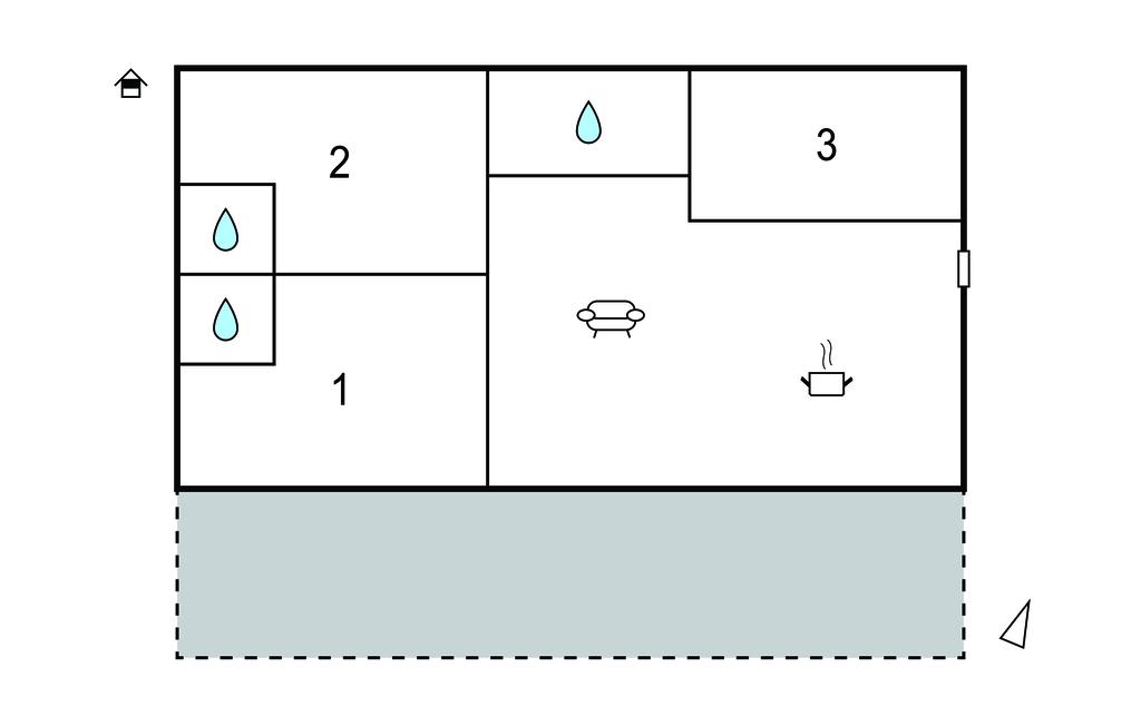Badeværelse 5m2 (nr. 1) - WC. Varmt og koldt vand. Bruser