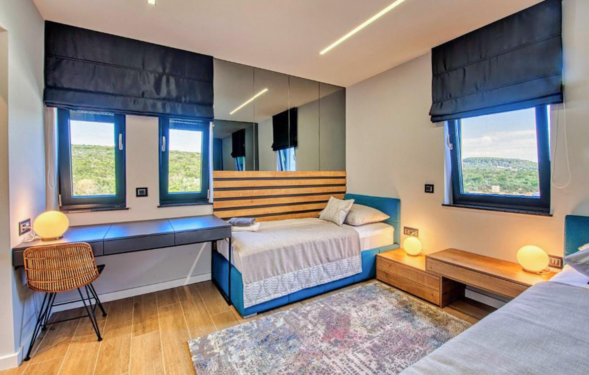 Nyd en ferie i jeres feriehus i Debeljak, som vil forblive i jeres hukommelse i lang tid. Det moderne hus byder på adskillige afslappende og behagelige faciliteter for hele familien. Til jeres underholdning er der et privat spilleområde med billard, dart og bordfodbold. Brug tiden til at have det sjovt med venner og tilbring en afslappende dag indendørs. Og brug jeres pool og jeres spabad på terrassen til at forfriske og forkæle jer selv, mens I nyder den betagende udsigt over det bølgende landskab og havet i horisonten. Der er en række udendørs legeredskaber til rådighed for børn.