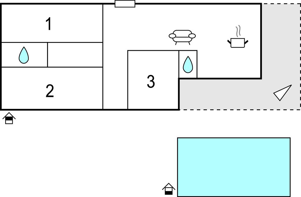 Opholdsstue/køkken 40m2 - 2 Sovepladser. (Sofa, madras eller lignende).