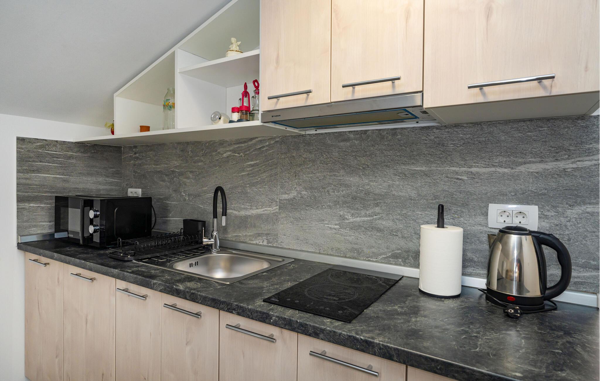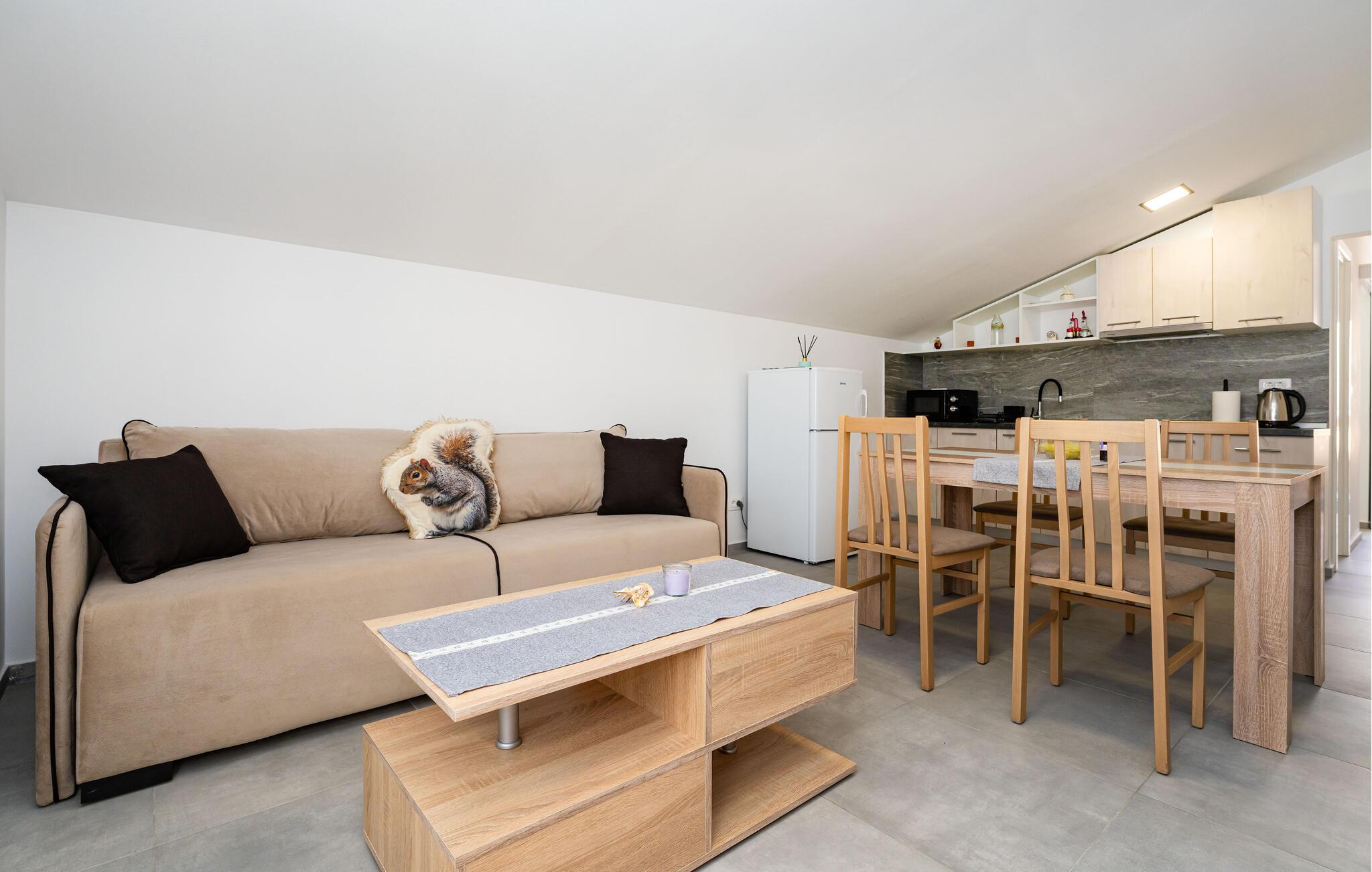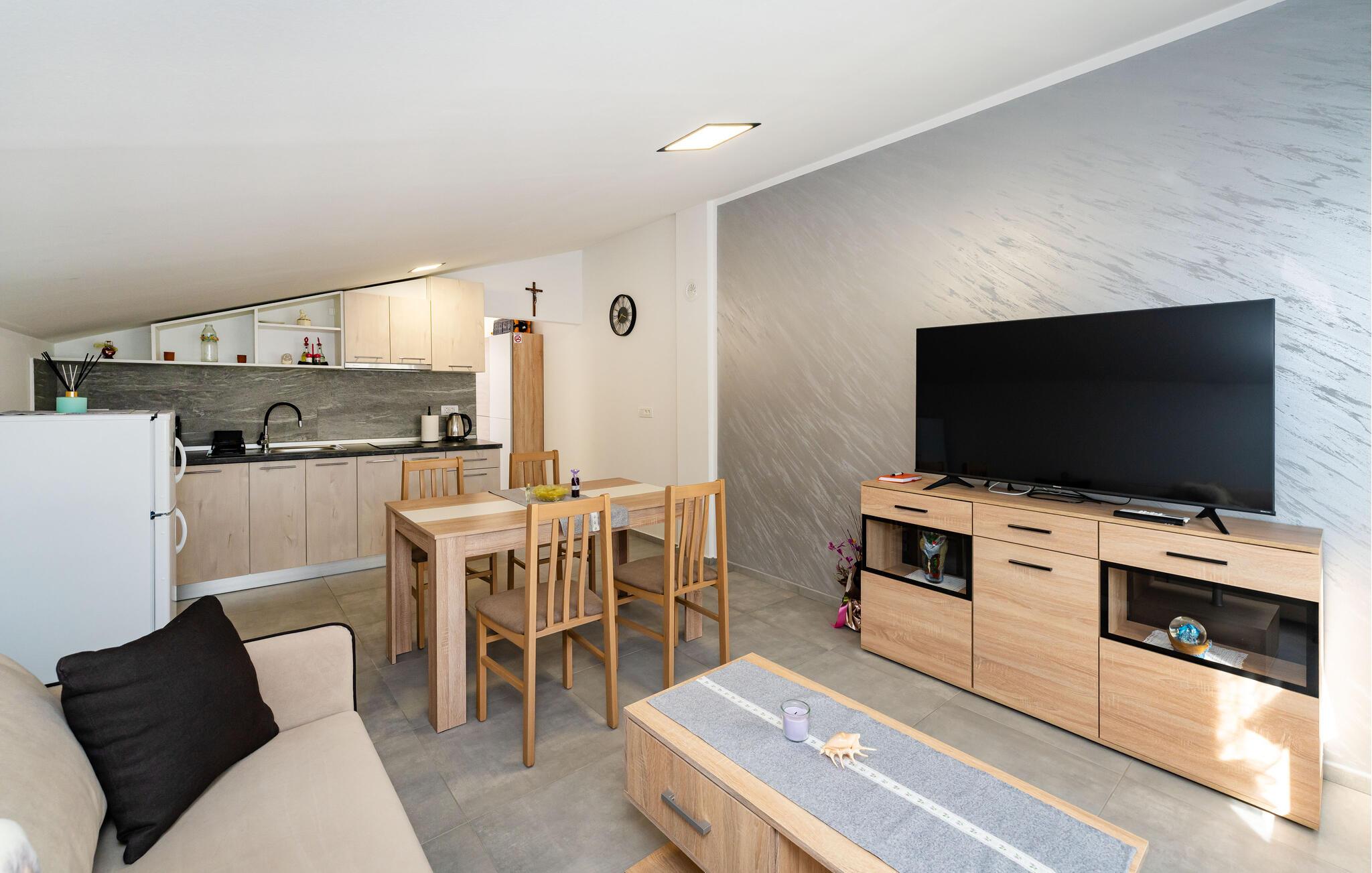 Udforsk strandene i Gornji Karin, som ligger inden for gåafstand. Udforsk Karinsko More-lagunen, eller besøg Zrmanja-floddalen for en bådtur eller rafting. Nationalparkerne Paklenica og Krka ligger også inden for rækkevidde og tilbyder spektakulære naturoplevelser. Gør jeres ophold til en afslappende oplevelse mellem hav og bjerge.