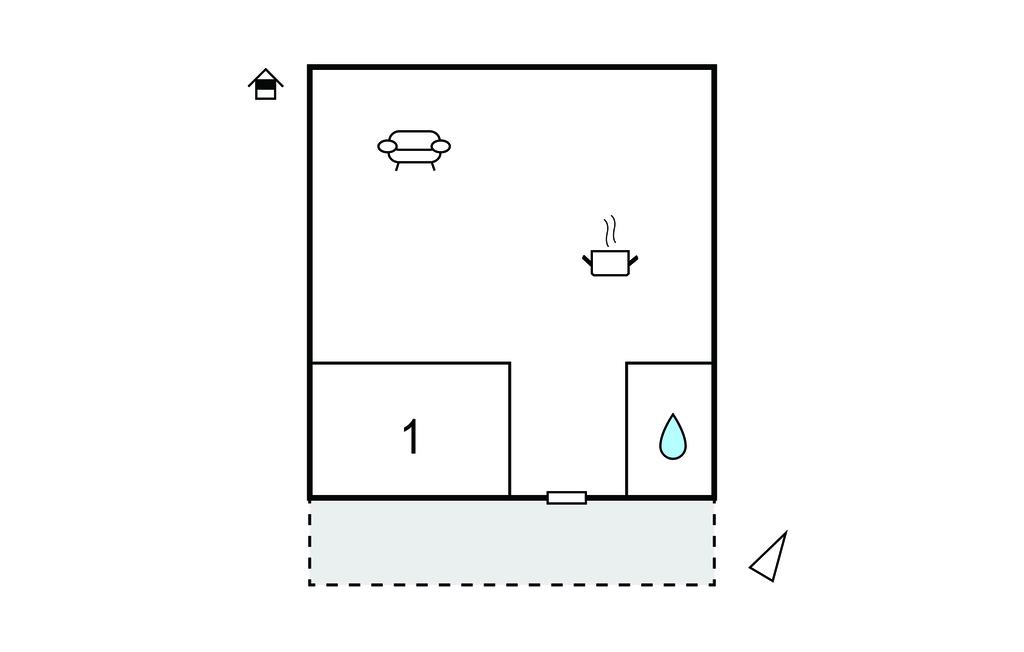 Opholdsstue/køkken 20m2 - 2 Sovepladser. (Sofa, madras eller lignende).