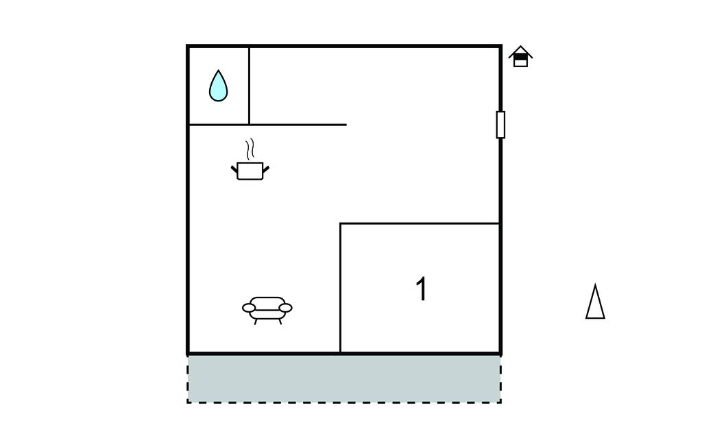 Opholdsstue/køkken 20m2 - 2 Sovepladser. (Sofa, madras eller lignende).