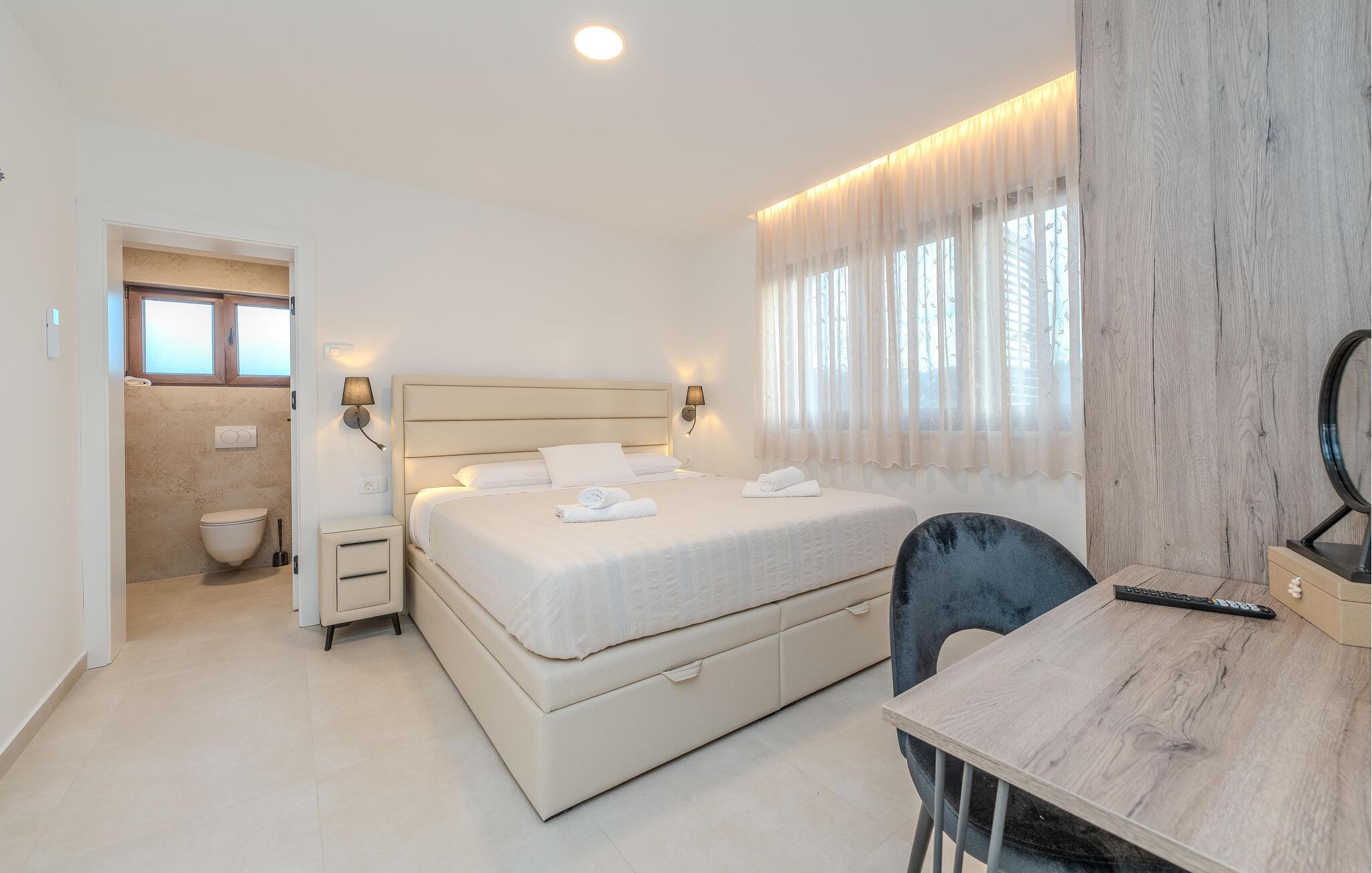 Dette charmerende feriehus i hacienda-stil giver jer et afslappende tilflugtssted med udsigt over Starigrad og havet. Slap af i de komfortable værelser, der hver har eget badeværelse. Det lyse og smagfulde design skaber en hjemlig atmosfære, som lader jer finde ro og nyde ferien fuldt ud. Husets indbydende og middelhavsinspirerede stil hjælper jer med at glemme hverdagens travlhed og leve i nuet.