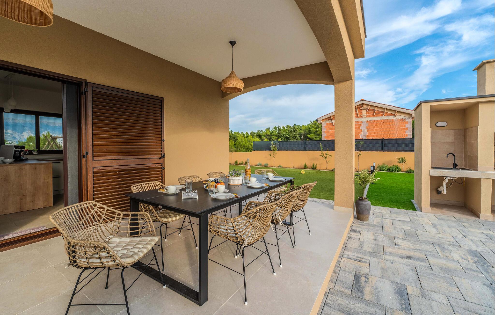 Husets rolige beliggenhed giver et ideelt udgangspunkt for udflugter. Besøg det historiske Zadar med sine mange kulturseværdigheder, eller udforsk øen Pag, som let kan nås via en bro. Lej en cykel eller scooter for at opdage vinregionen og de maleriske landskaber omkring Jovici. Her får I en blanding af natur, kultur og kroatisk livsstil – det perfekte sted for en uforglemmelig ferie.