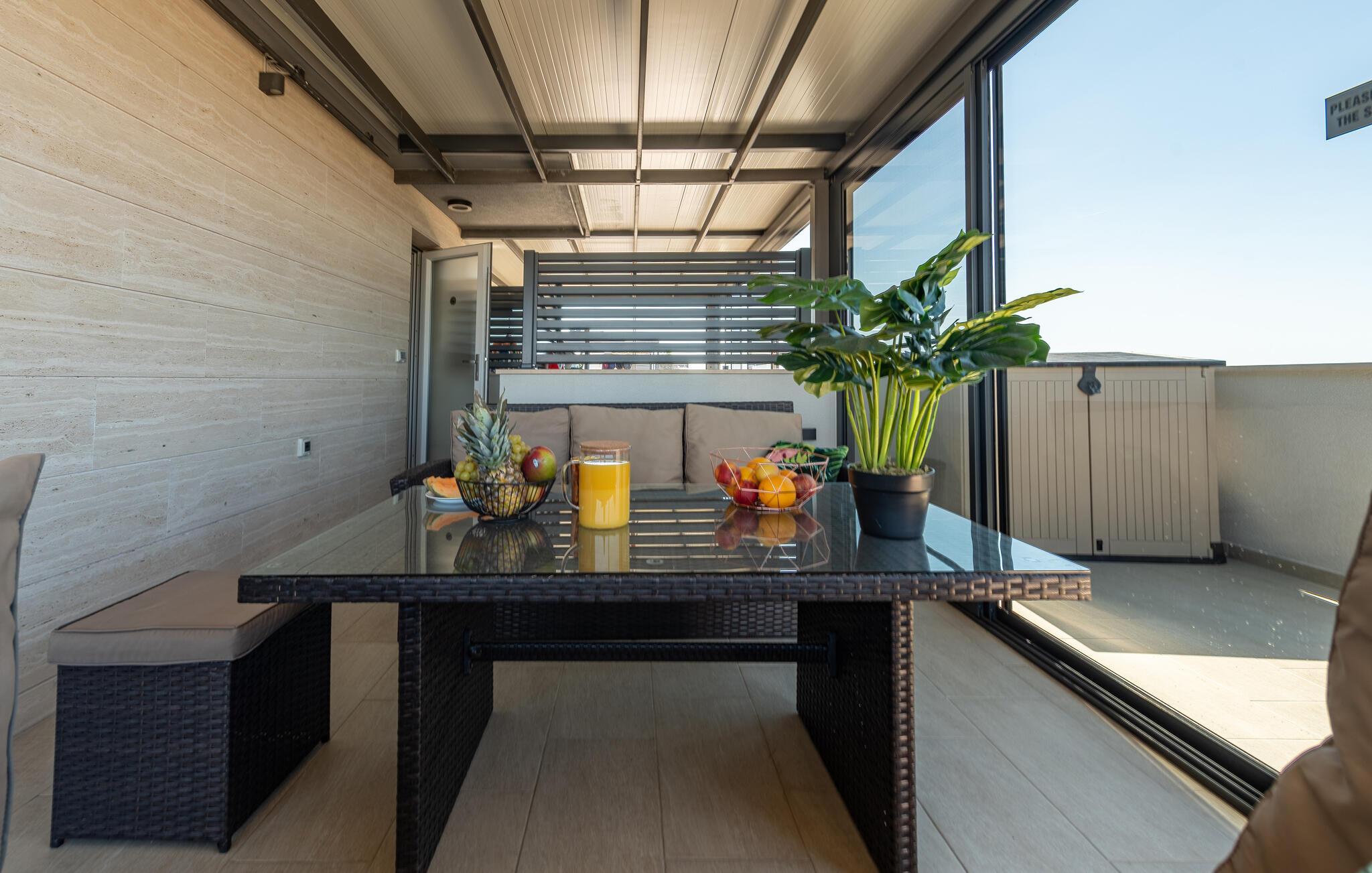 Nyd ferien i denne luksuriøse ferielejlighed med fælles tagterrasse, jacuzzi og en fantastisk havudsigt.