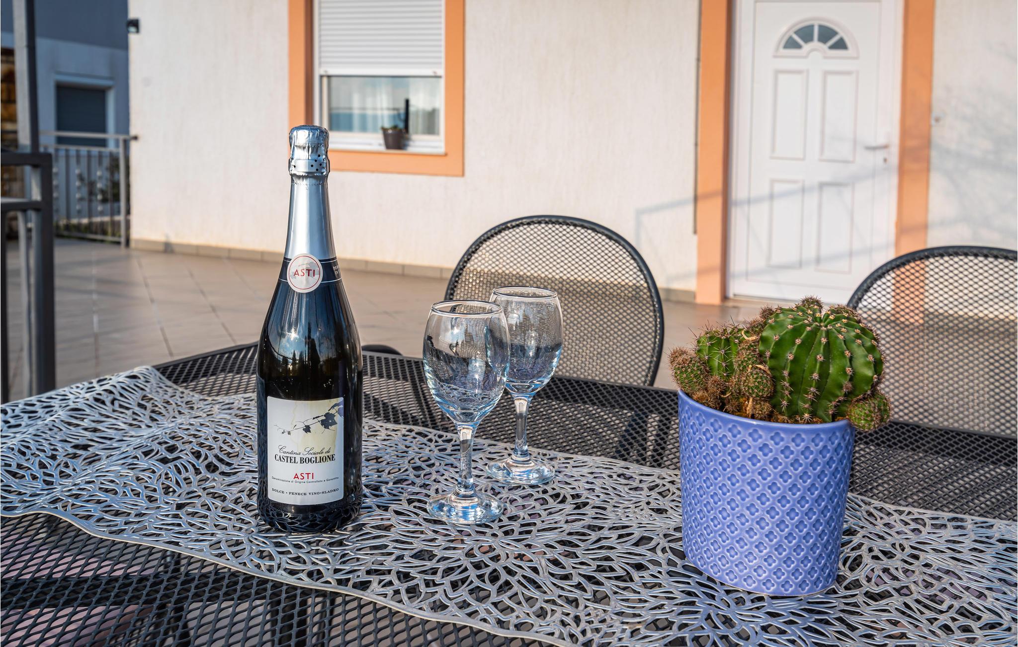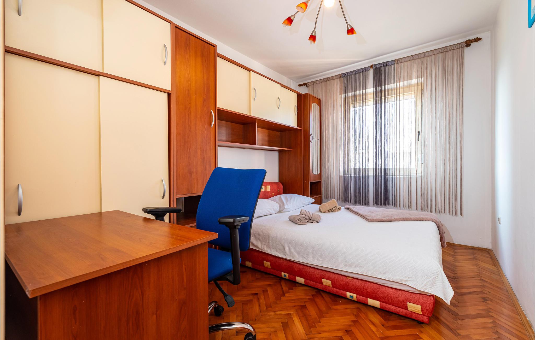 Denne skønne lejlighed i Dalmatien byder på en masse skønne detaljer og en helt fantastisk terrasse. Her har I god plads til at samles eller dele jer op alt efter behov, for lejligheden er godt indrettet til en gruppe på seks personer. Dagene begynder med kaffe på terrassen, mens kvarteret vågner, og de første strandgæster dukker op. Hvis I føler for at lave en lækker grillmiddag senere på dagen, kan I benytte fællesgrillen.