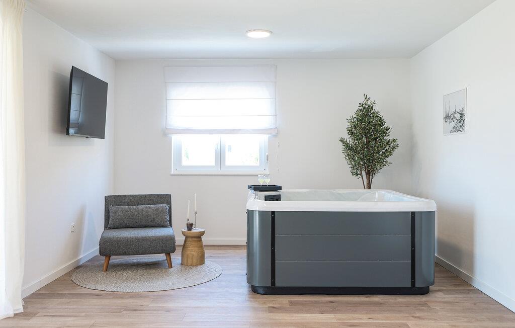 Oplev en uforlignelig feriefølelse i dette skønne feriehus med havudsigt og pool. Velkommen til jeres nye yndlingssted - dette charmerende og store feriehus i Maslenica, der tilbyder jer både komfort og en følelse af hjem. Med to separate indgange giver det jer mulighed for at opnå en perfekt balance mellem at tilbringe tid sammen og privat tilbagetog. Hver etage er noget særligt med et lyst, smagfuldt design, der skaber en venlig atmosfære. Wellness-området med sauna, spabad og fitnessudstyr lægger op til at slappe af og lade batterierne op efter en aktiv dag. Nyd panoramaudsigten over Novigradhavet fra stuen og balkonen eller slap af ved poolen i haven. Den overdækkede terrasse lægger op til middag udendørs efter at have tilbragt eftermiddagen med at dase på liggestolene. Maslenica og dens omgivelser er et sandt paradis for opdagelsesrejsende og eventyrlystne. Naturen omkring Paklenica Nationalpark byder på uendelige muligheder for vandre- og klatring. De nærliggende strande lægger op til at bade i det klare vand eller blot nyde solen. Et besøg i den livlige by Zadar er også værd - her finder I historiske seværdigheder og de unikke havorganer. Lokale restauranter giver jer mulighed for at nyde lækre dalmatiske specialiteter. Oplev uforglemmelige øjeblikke i denne vidunderlige region.