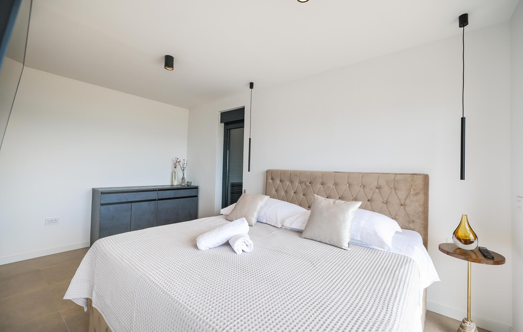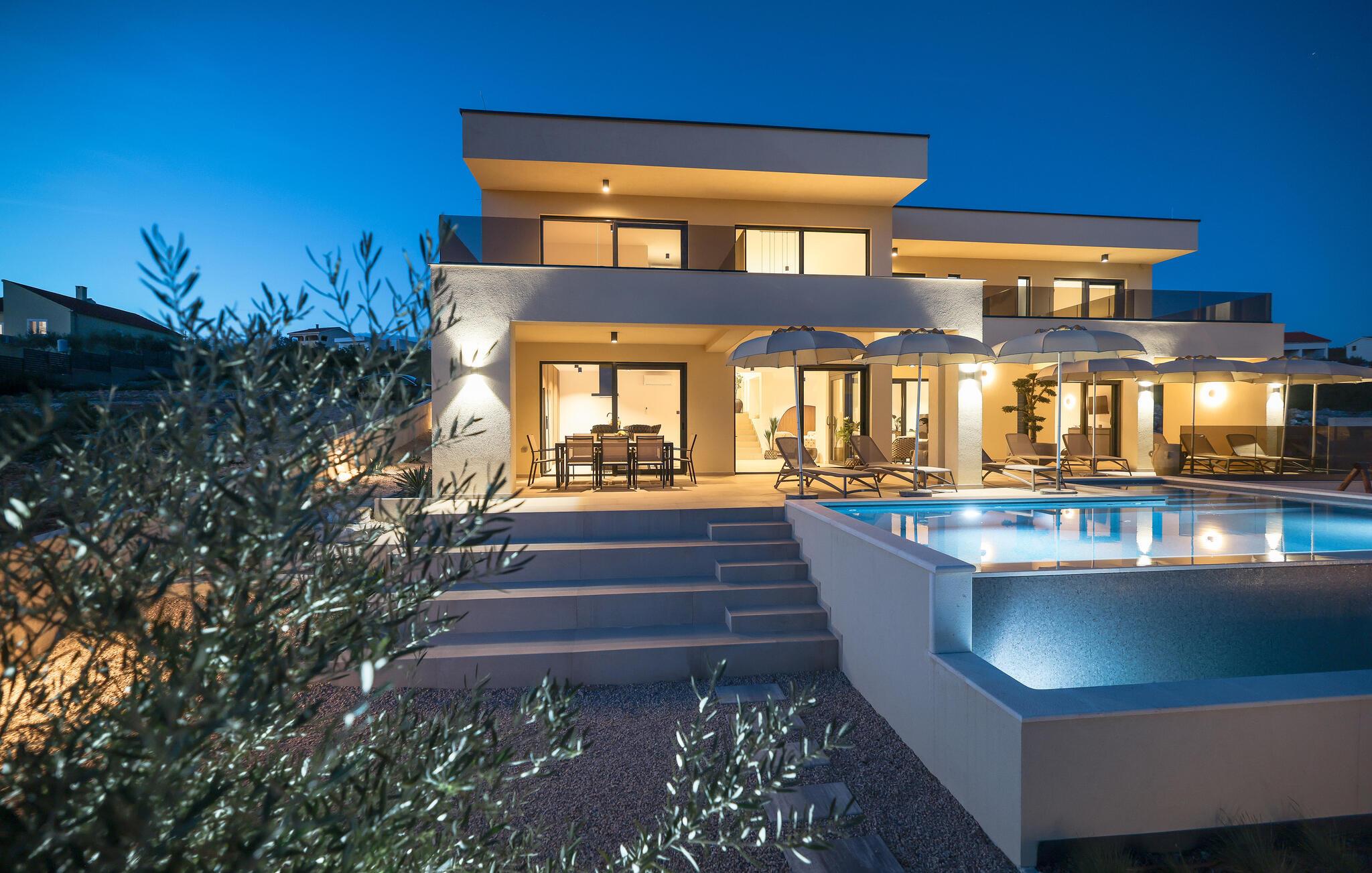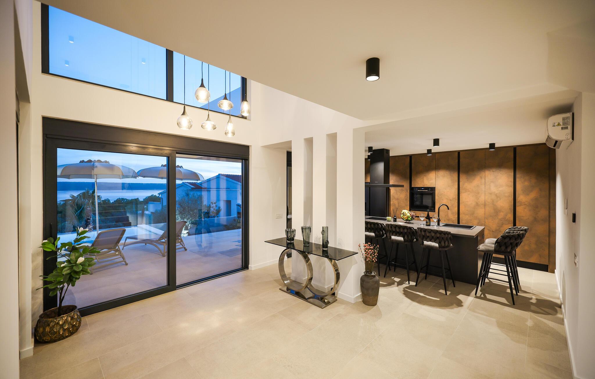 I dette udsøgte feriehus i Maslenica kan I se frem til luksuriøs komfort og elegant design. Boligen er stilfuldt indrettet med kvalitetsløsninger og høj komfort. Nyd pauserne i de æstetiske rum og giv jer i kast med hyggelige ferieretter i det veludstyrede køkken.