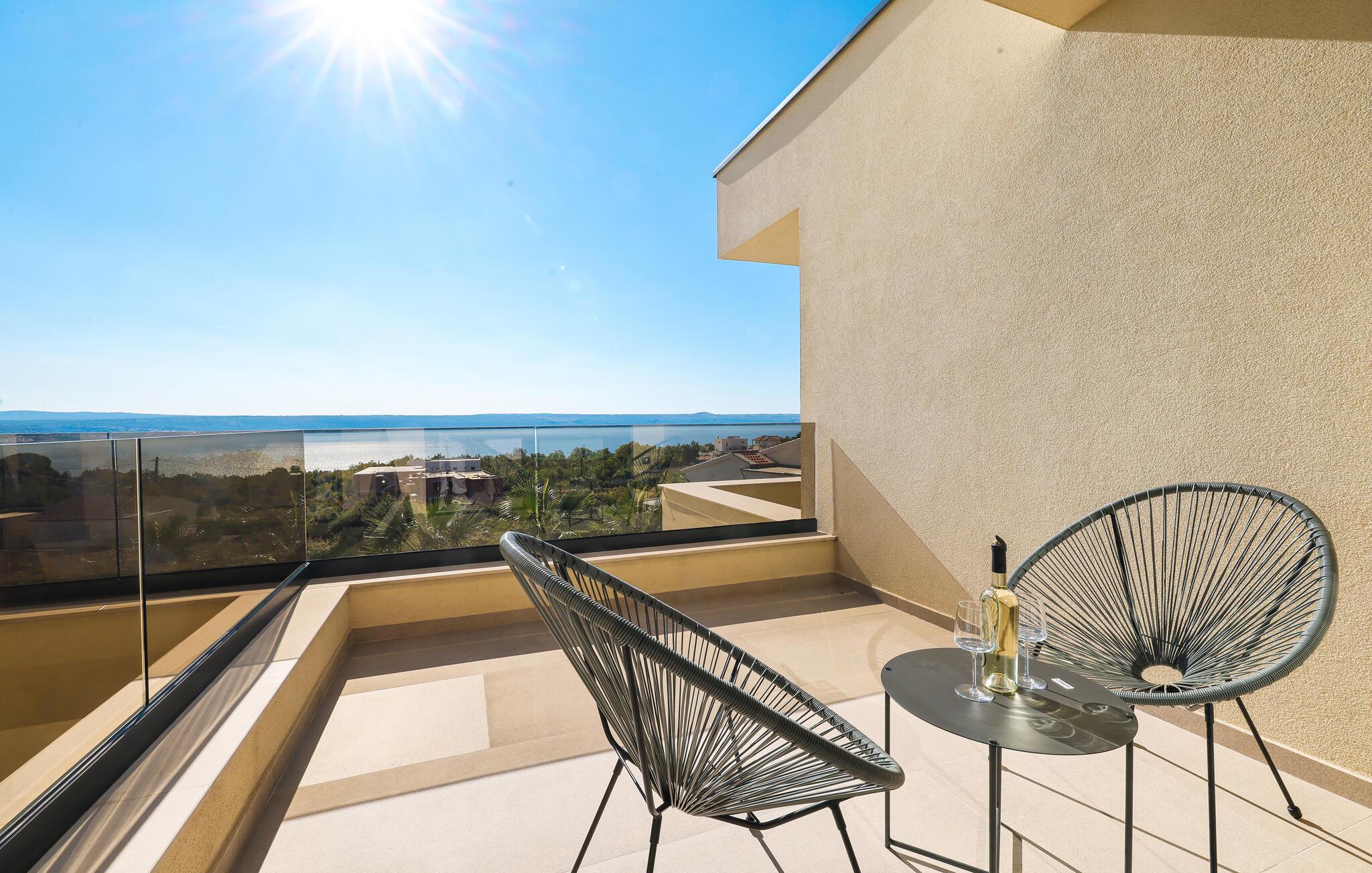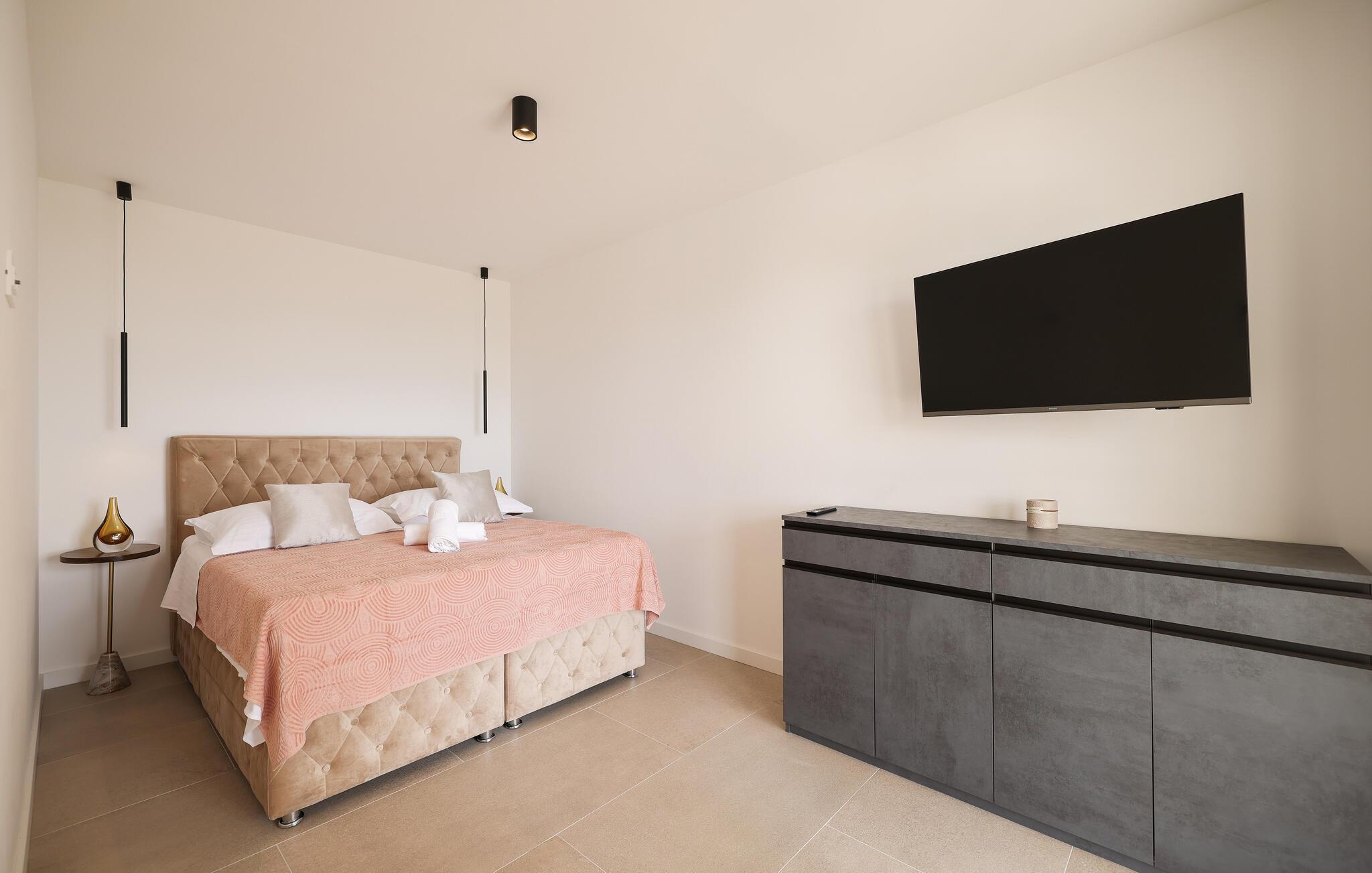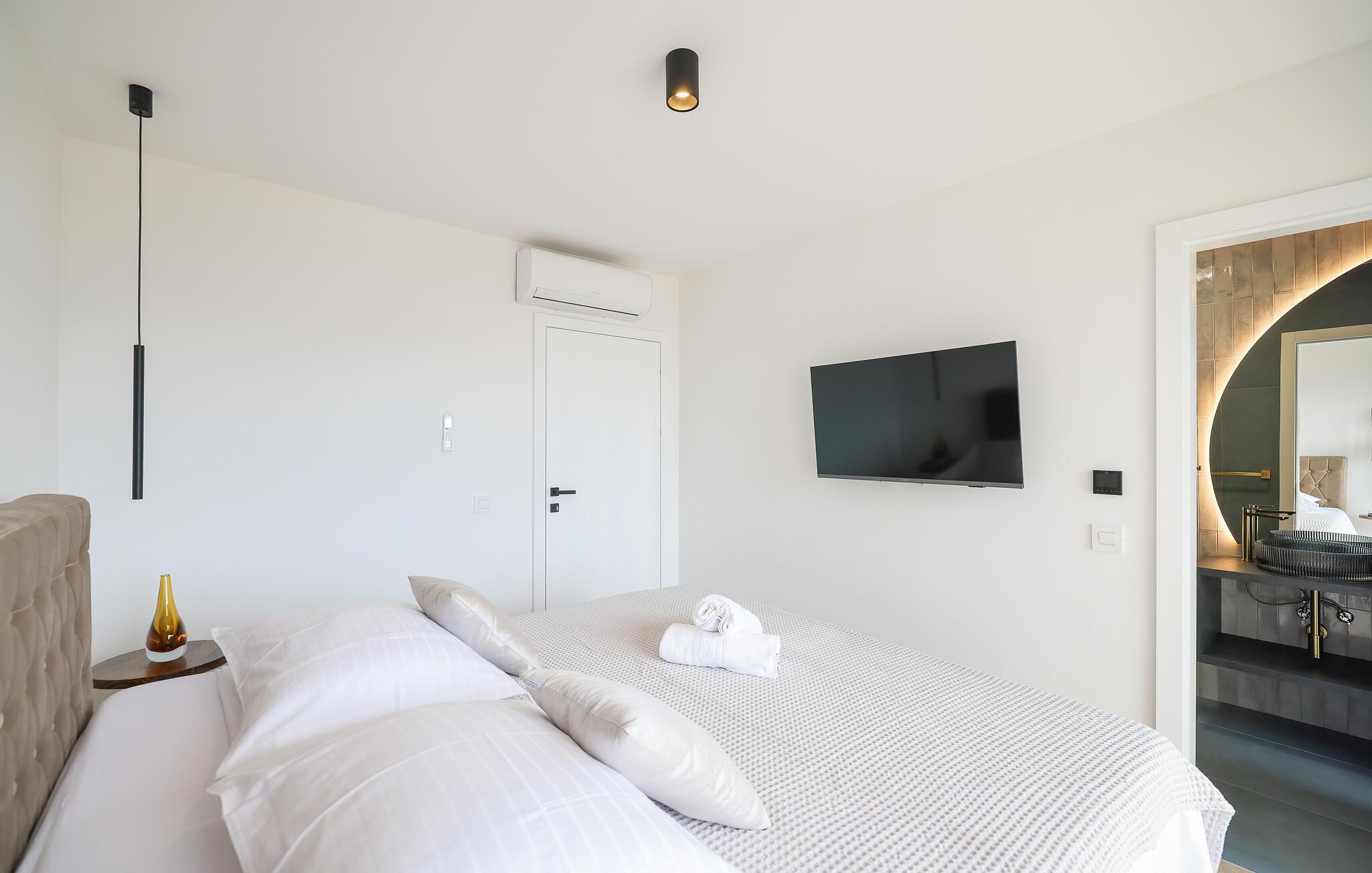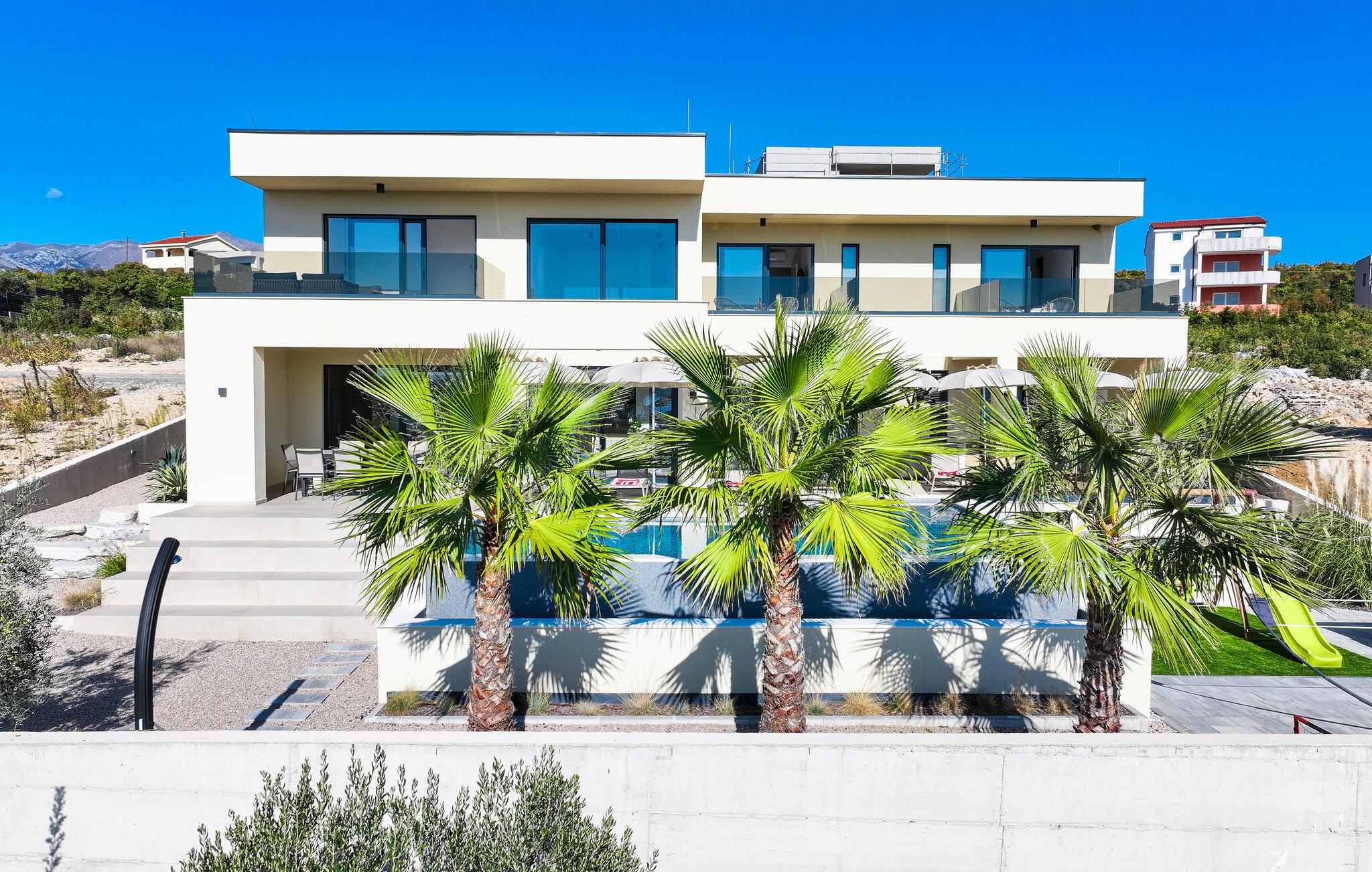 I dette udsøgte feriehus i Maslenica kan I se frem til luksuriøs komfort og elegant design. Boligen er stilfuldt indrettet med kvalitetsløsninger og høj komfort. Nyd pauserne i de æstetiske rum og giv jer i kast med hyggelige ferieretter i det veludstyrede køkken.