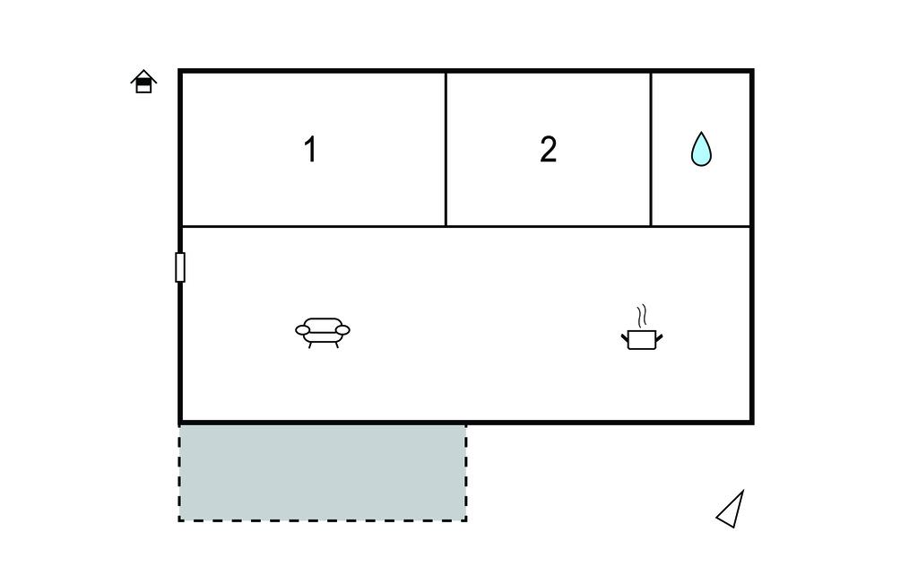 Opholdsstue/køkken 30m2 - 2 Sovepladser. (Sofa, madras eller lignende).