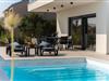 Lad blikket vandre over havet fra den rummelige terrasse. Slap af på liggestolene ved poolen og nyd en forfriskende dukkert. Find et skyggefuldt sted under parasollen eller find sammen omkring det store bord for at nyde en hyggelig aften udendørs.
