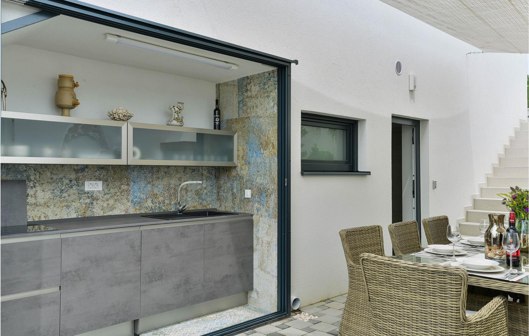 Tag en kort gåtur til stranden og nyd det turkise vand, der strækker sig roligt langs kysten nær Maslenica. Snorkel eller svøm i den beskyttede bugt eller lej en kajak for at opleve den omkringliggende natur fra havet. Udforsk det fantastiske landskab med en tur til den spektakulære Maslenica-bro eller padl langs karstfloden Zrmanja – et eventyr for spændingssøgende. Og hvis I har lyst til en storbyferie, ligger den pulserende by Zadar, rig på historie, kultur og imponerende seværdigheder, kun en kort køretur væk.