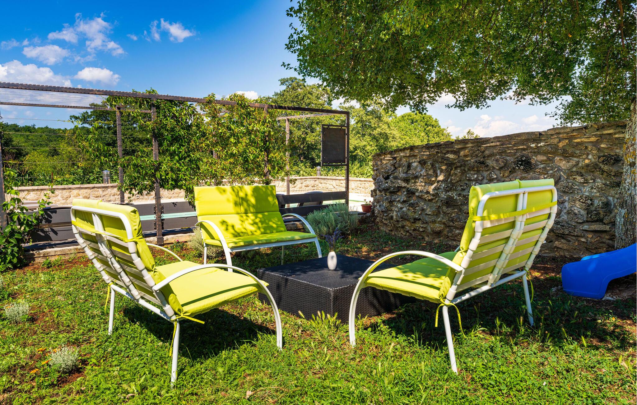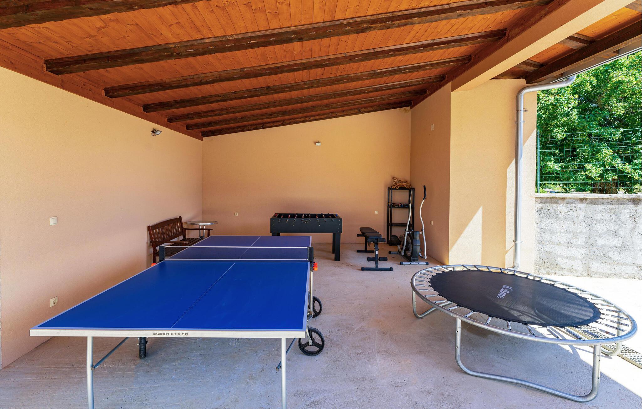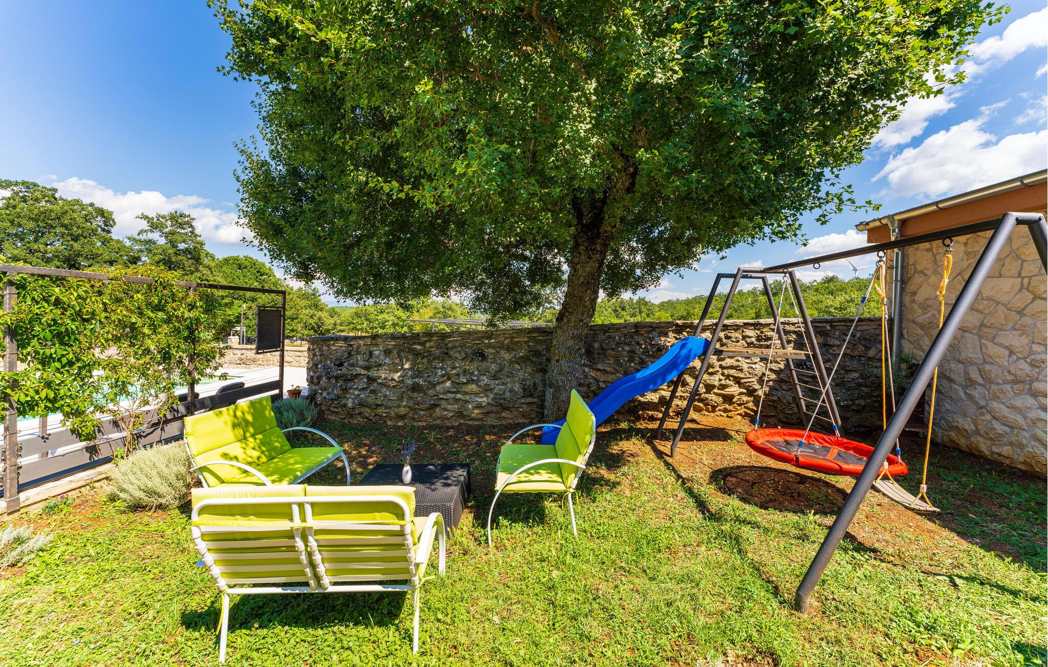 Velkommen til dette indbydende feriehus omgivet af natur og med en unik charme. De massive loftsbjælker og synlige murværk giver huset en varme og autenticitet, og et lille indblik i husets fortid. Efter et godt måltid kan I slappe af i sofaen om aftenen eller nyde en varm sommeraften udendørs. I haven er der god underholdning til børnene med de mange legeredskaber. Nyd solen, forfrisk jer i poolen og grill udendørs med hele familien.