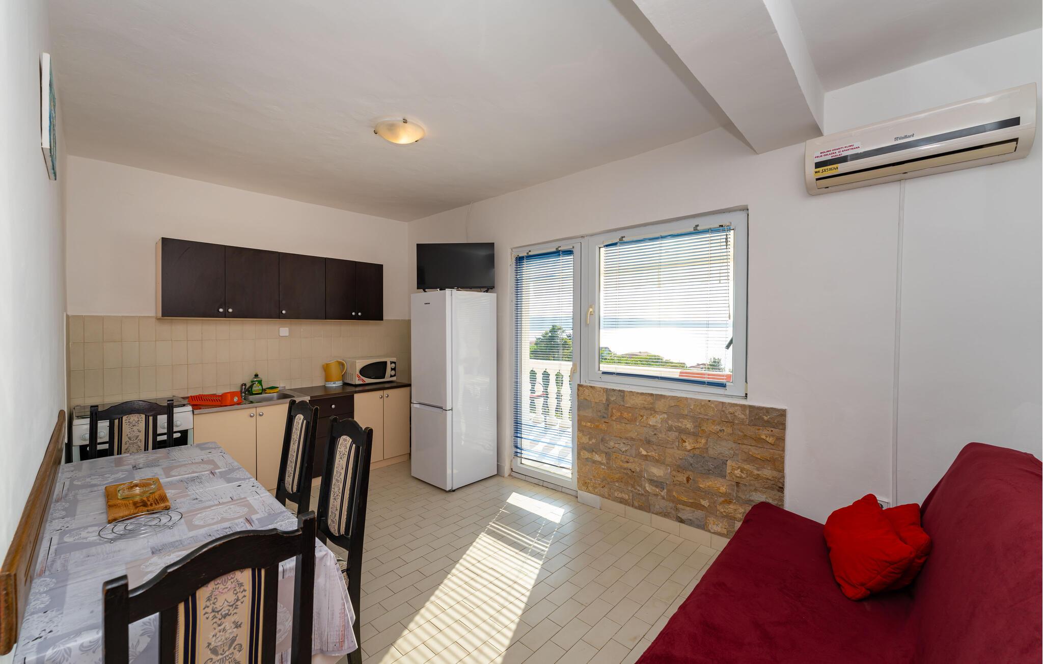 En helt speciel oplevelse venter jer i denne ferielejlighed i Novigrad. De klassiske møbler kombinerer praktisk funktionalitet med attraktivt design, hvilket skaber en indbydende atmosfære. Den lyse bolig er komfortabelt indrettet, mens balkonen med havudsigt er noget helt særligt til de afslappende stunder. Nyd udsigten over Adriaterhavet og afslut dagen med et glas vin. I huset ligger der endnu en ferielejlighed samt fælles terrasse med grill og en lille taverna til sociale aftener.