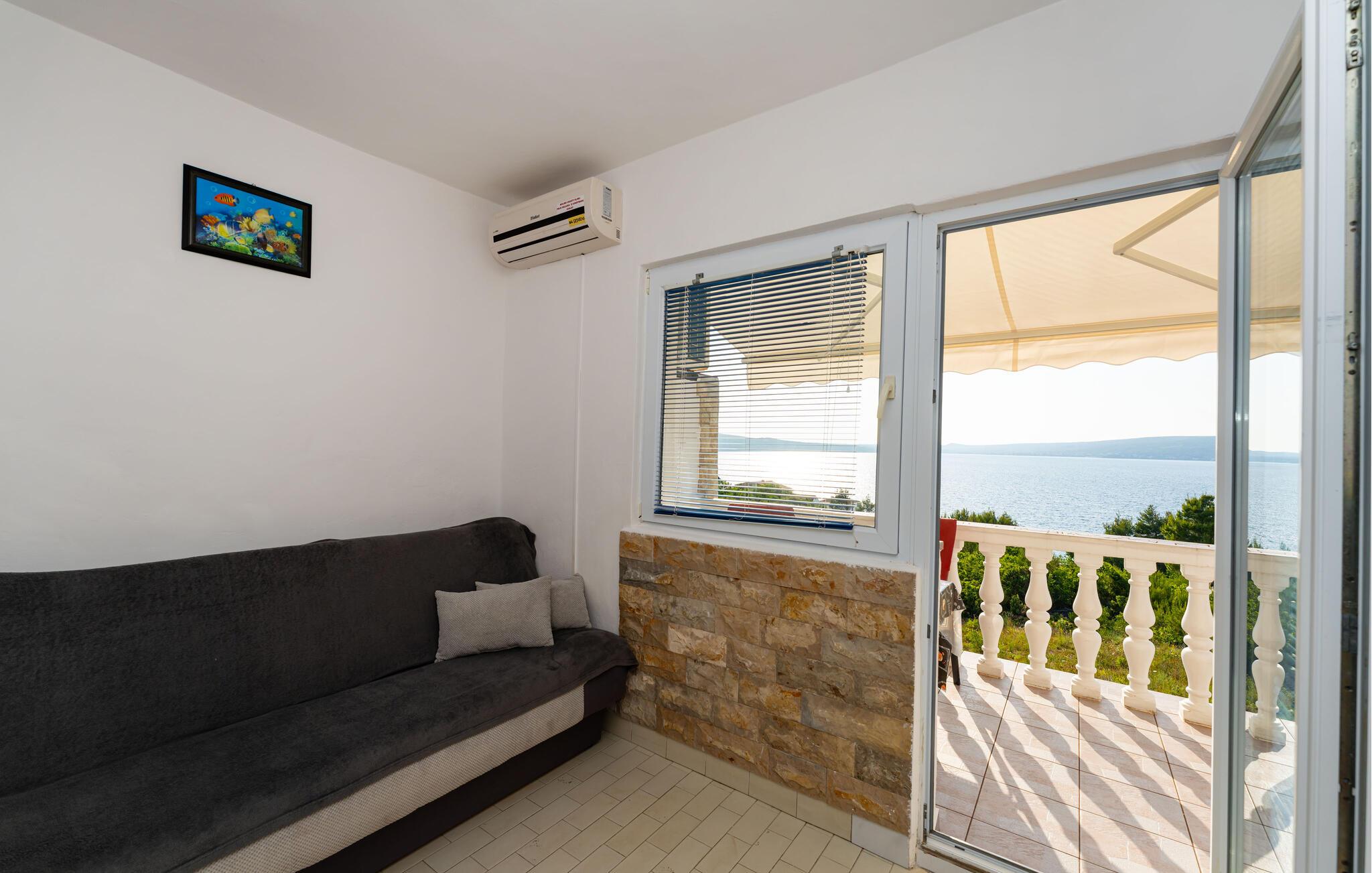 Tilbring jeres familieferie i denne praktiske lejlighed med havudsigt.