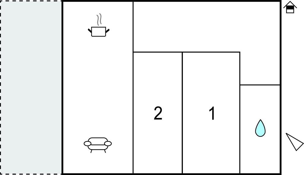 Opholdsstue/køkken 30m2 - 1 Soveplads. (Sofa, madras eller lignende).