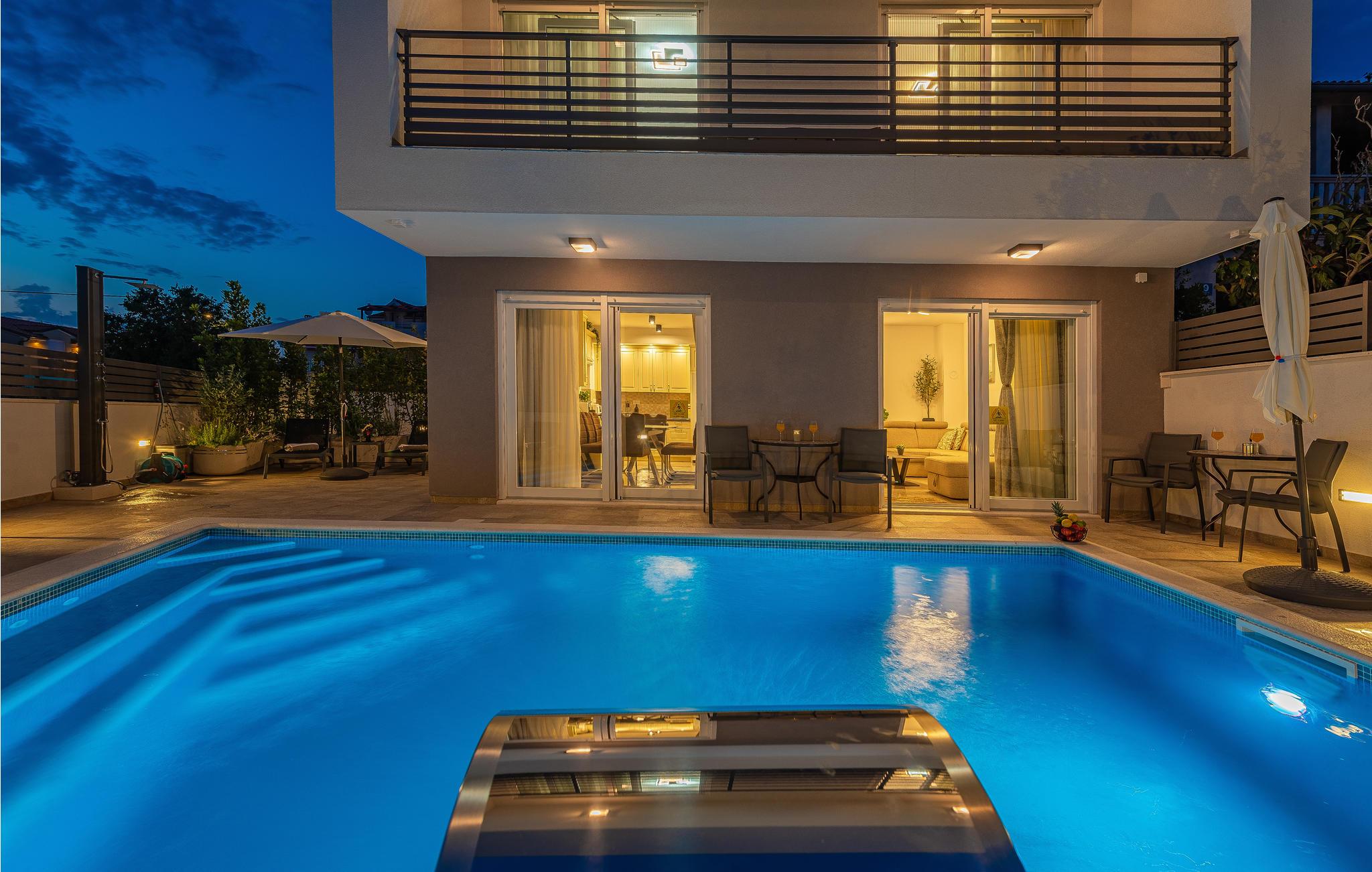 Rummeligt feriehus med tageterrasse, spa, pool og sauna, beliggende ved den dalmatiske kyst.