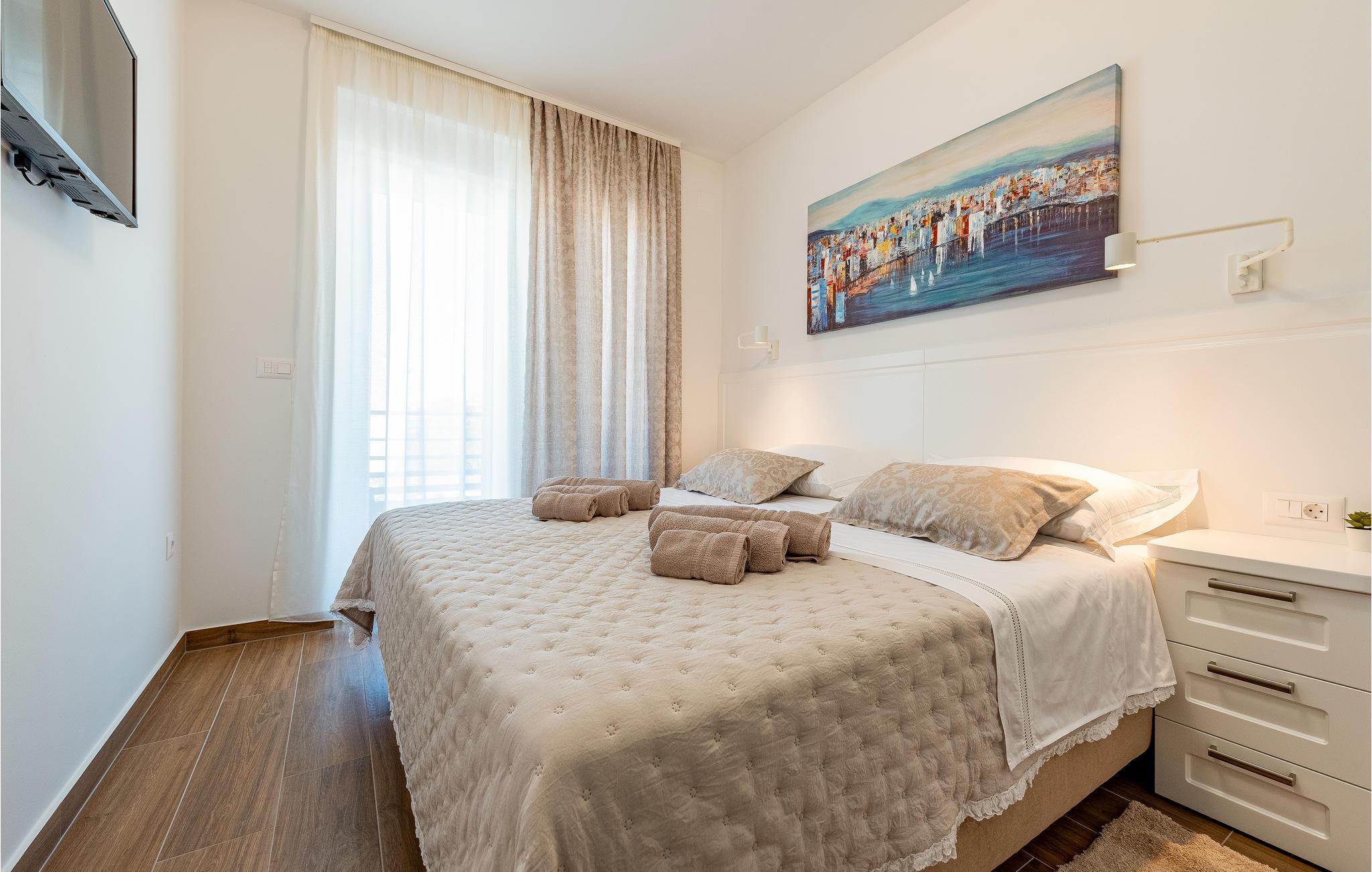 I har udsigt over den dalmatiske kyst, det glitrende Adriaterhav og de gyldne offshore-øer, som kan nås med færge. Besøg også Zadar eller Sibenik, hvis I har lyst til en spændende, kulturel dagsudflugt. Krka Nationalpark imponerer med sin enestående naturlige skønhed og er bestemt også et besøg værd.