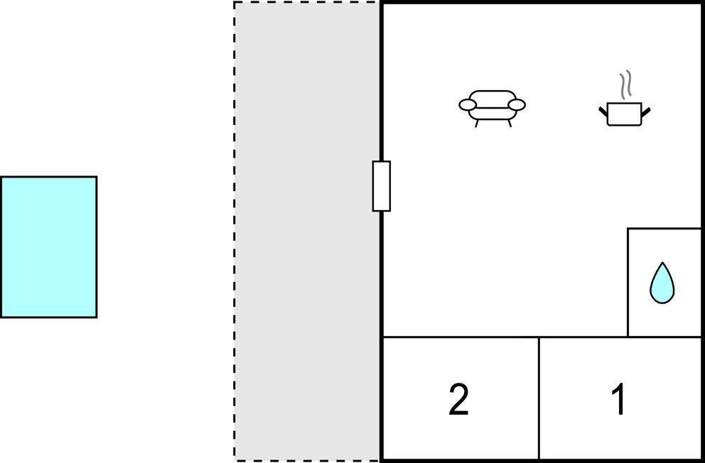 Opholdsstue/køkken 50m2 - 2 Sovepladser. (Sofa, madras eller lignende).