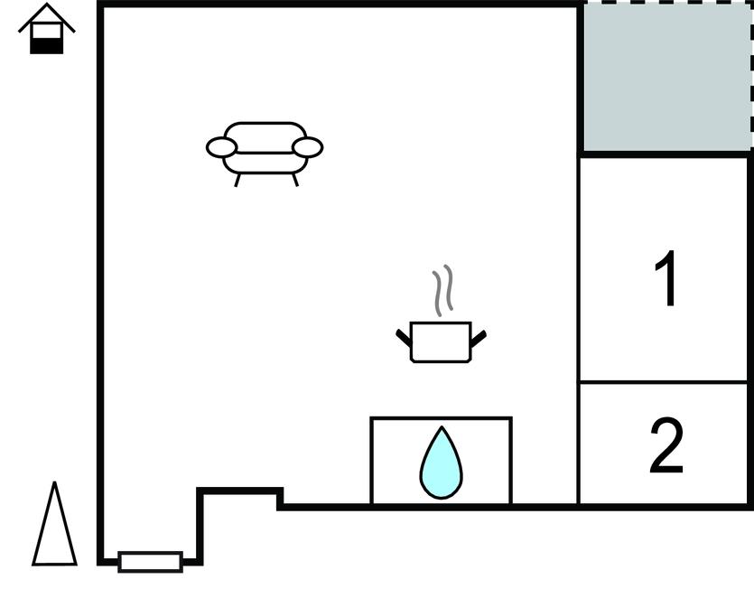 Komb. spisestue/køkken 15m2 - 1 Soveplads. (Sofa, madras eller lignende).