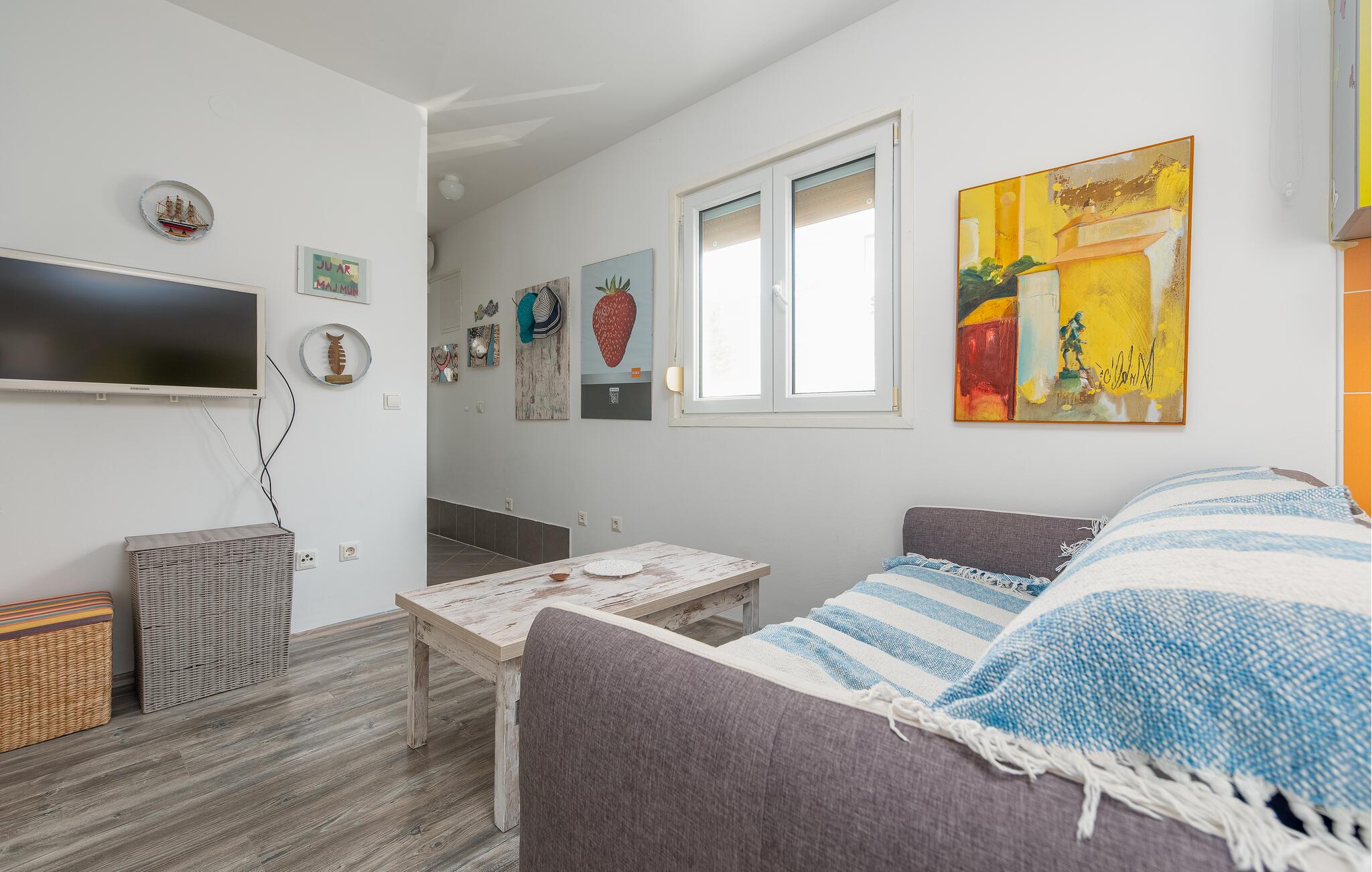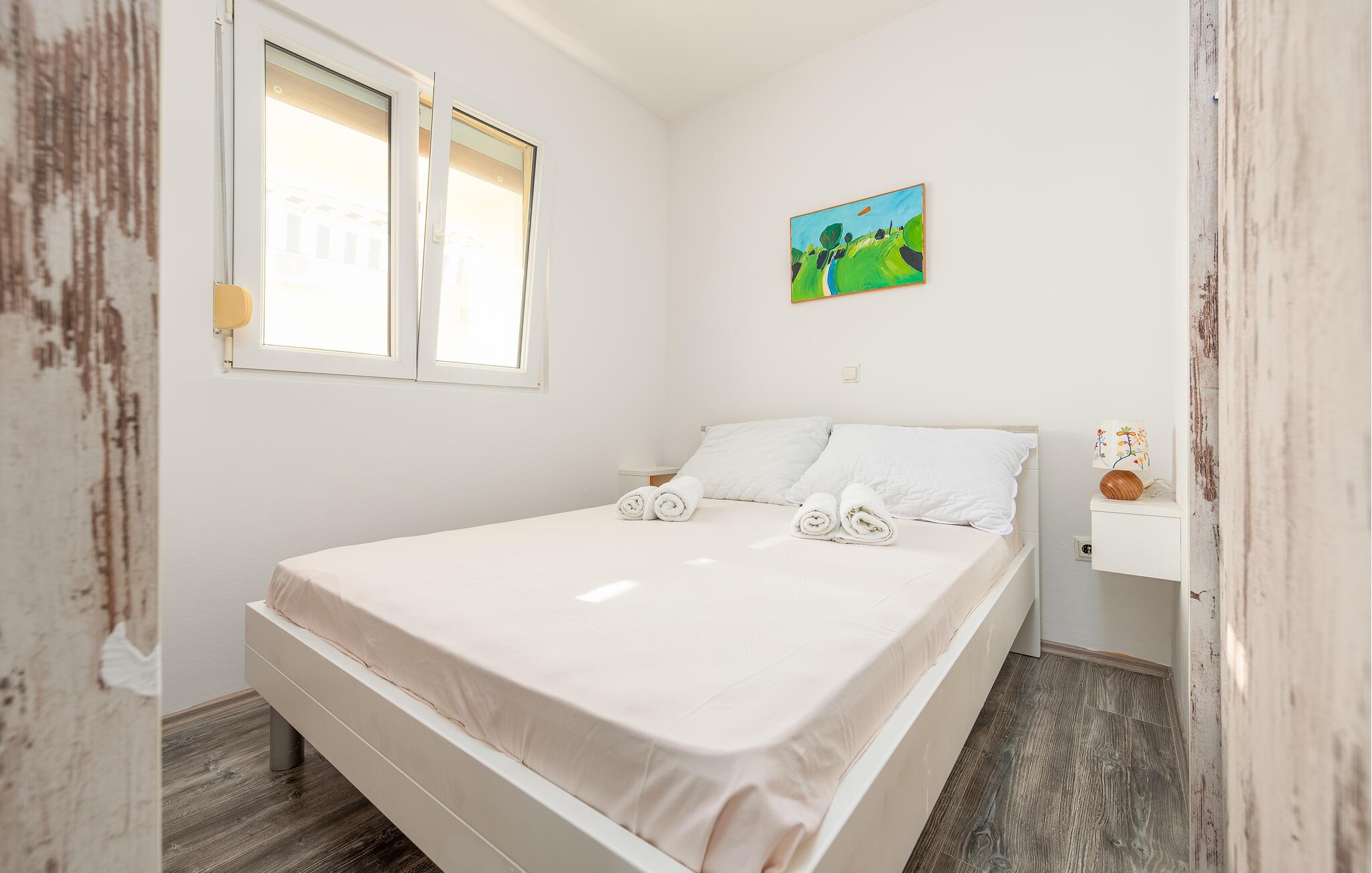 De lyse og nænsomt indrettede værelser sørger for, at I føler jer velkommen i denne ferielejlighed fra første øjeblik. Tilbered jeres yndlingsretter i det moderne, fuldt udstyrede køkken. Efter en lang dag på stranden kan I hygge jer sammen i sofaen, streame en spændende film eller afholde en spilleaften.