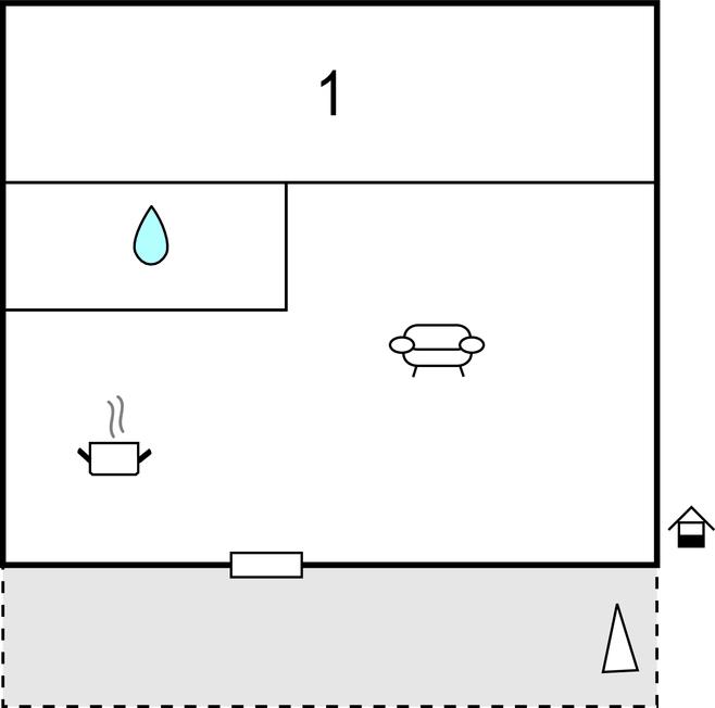 Opholdsstue/køkken 23m2 - 1 Soveplads. (Sofa, madras eller lignende).