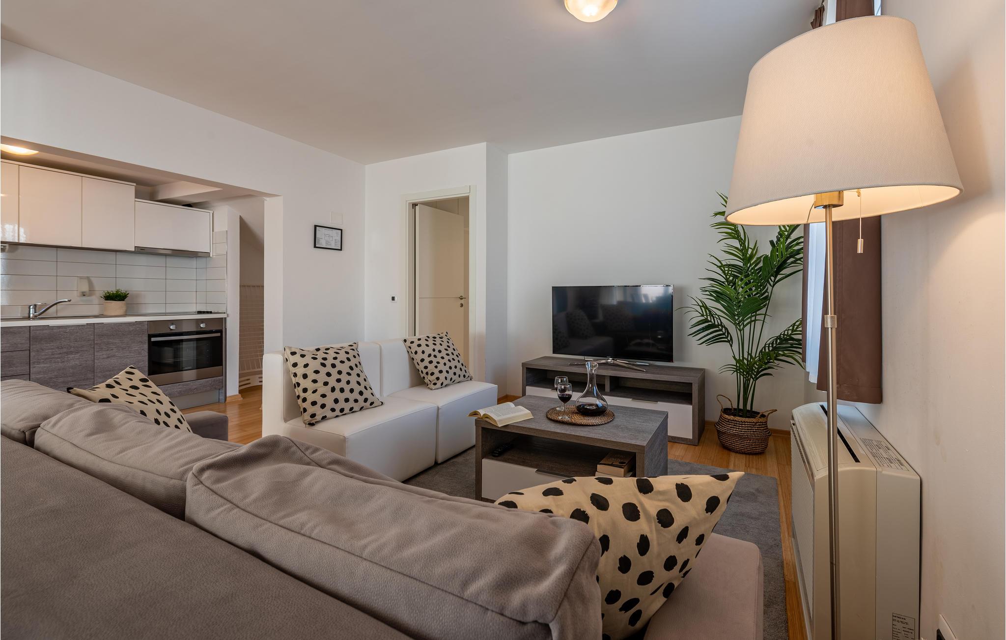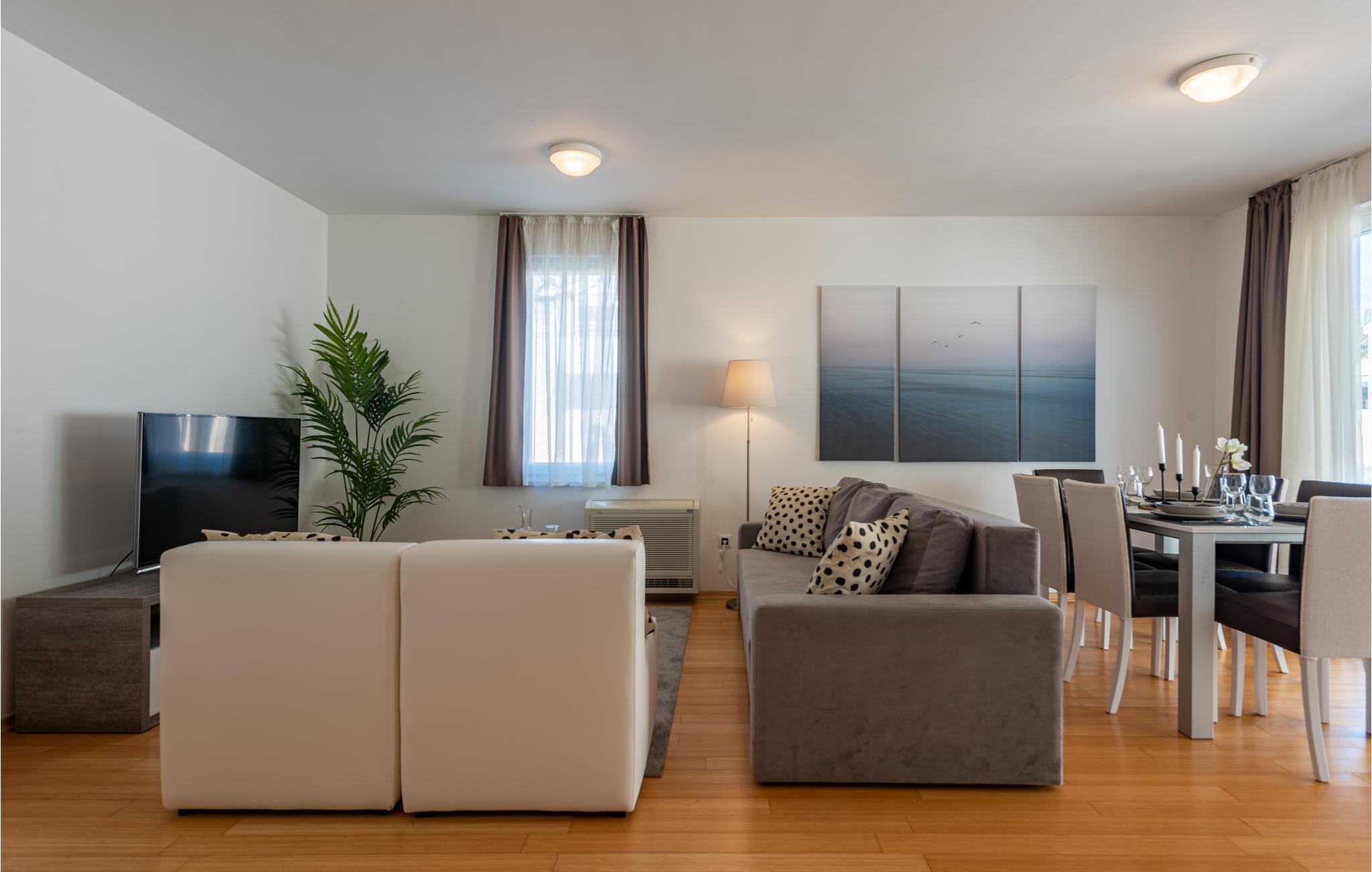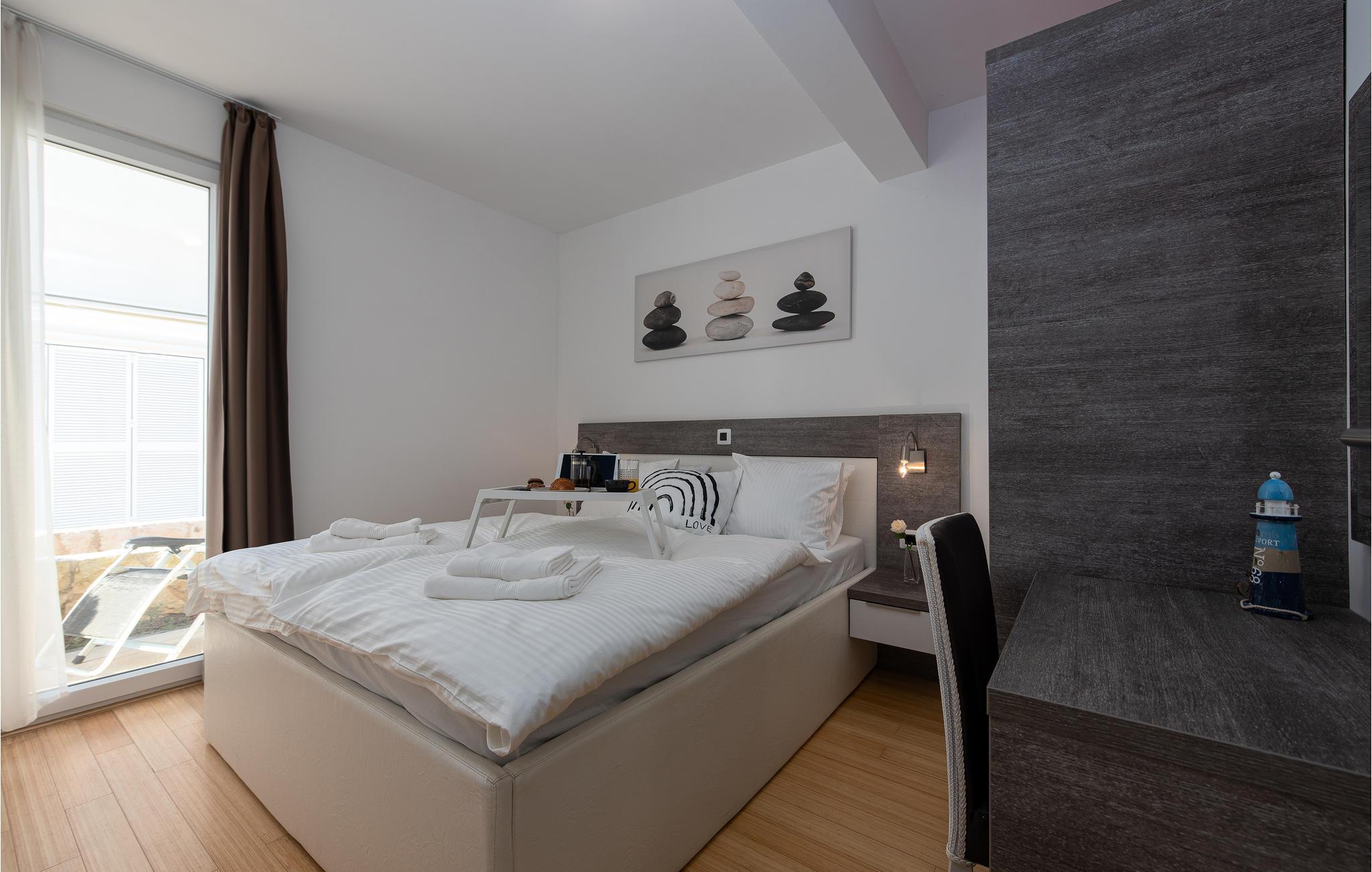 Gå et par skridt til havet og nyd det klare vand på den private strand, hvor I får gratis liggestole til rådighed. Besøg den fascinerende by Zadar, der udover sin fantastiske beliggenhed ved kysten også har mange imponerende historiske bygninger at byde på. Gå en tur gennem Forum Romanum, for eksempel, eller fordyb jer i historien om de tidlige indbyggere i det arkæologiske museum. En næsten perfekt udsigt tilbydes af en gåtur på bymuren. Afslut jeres udflugt på strandpromenaden og bliv fascineret af en spektakulær solnedgang over Adriaterhavet.