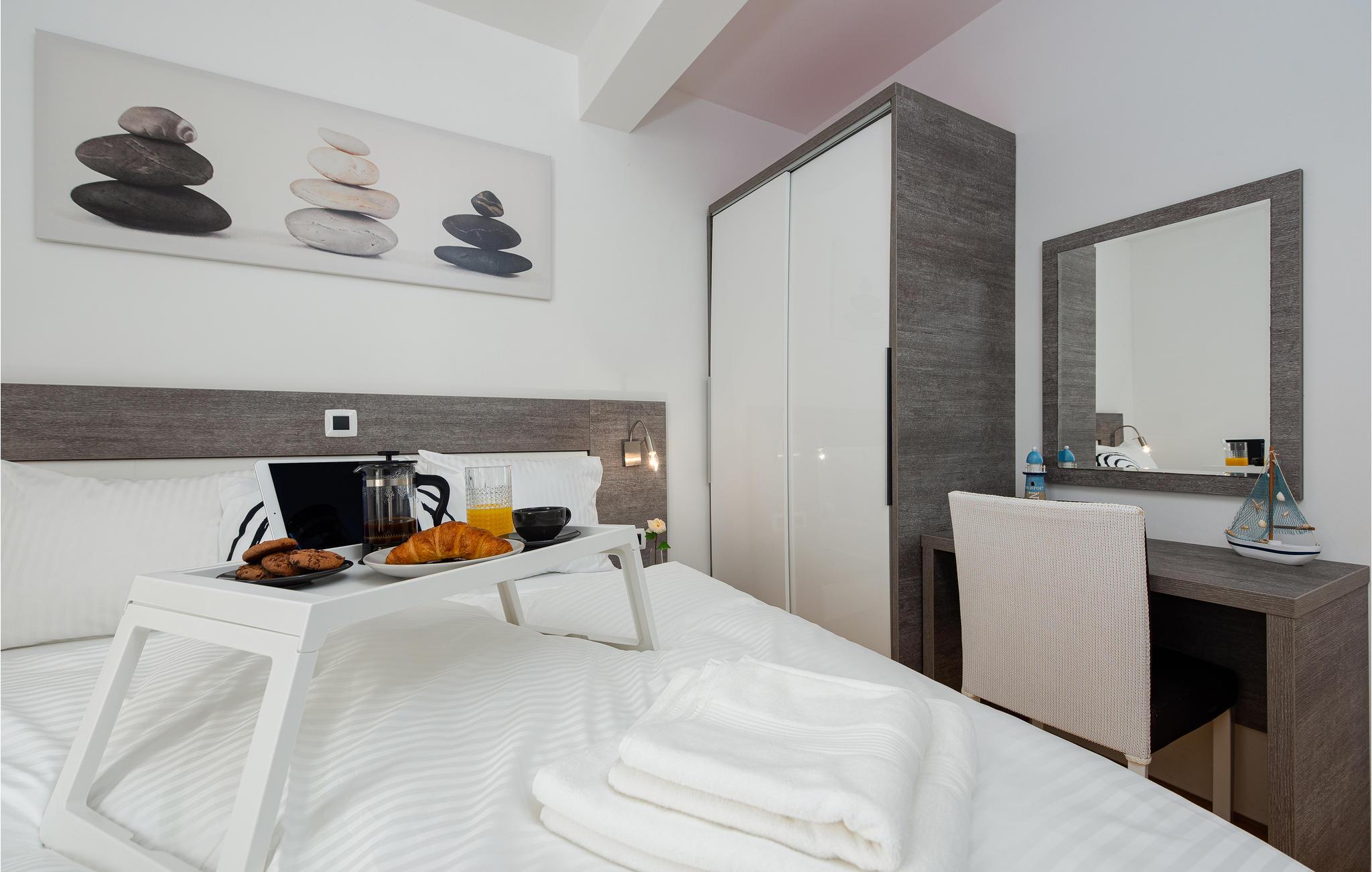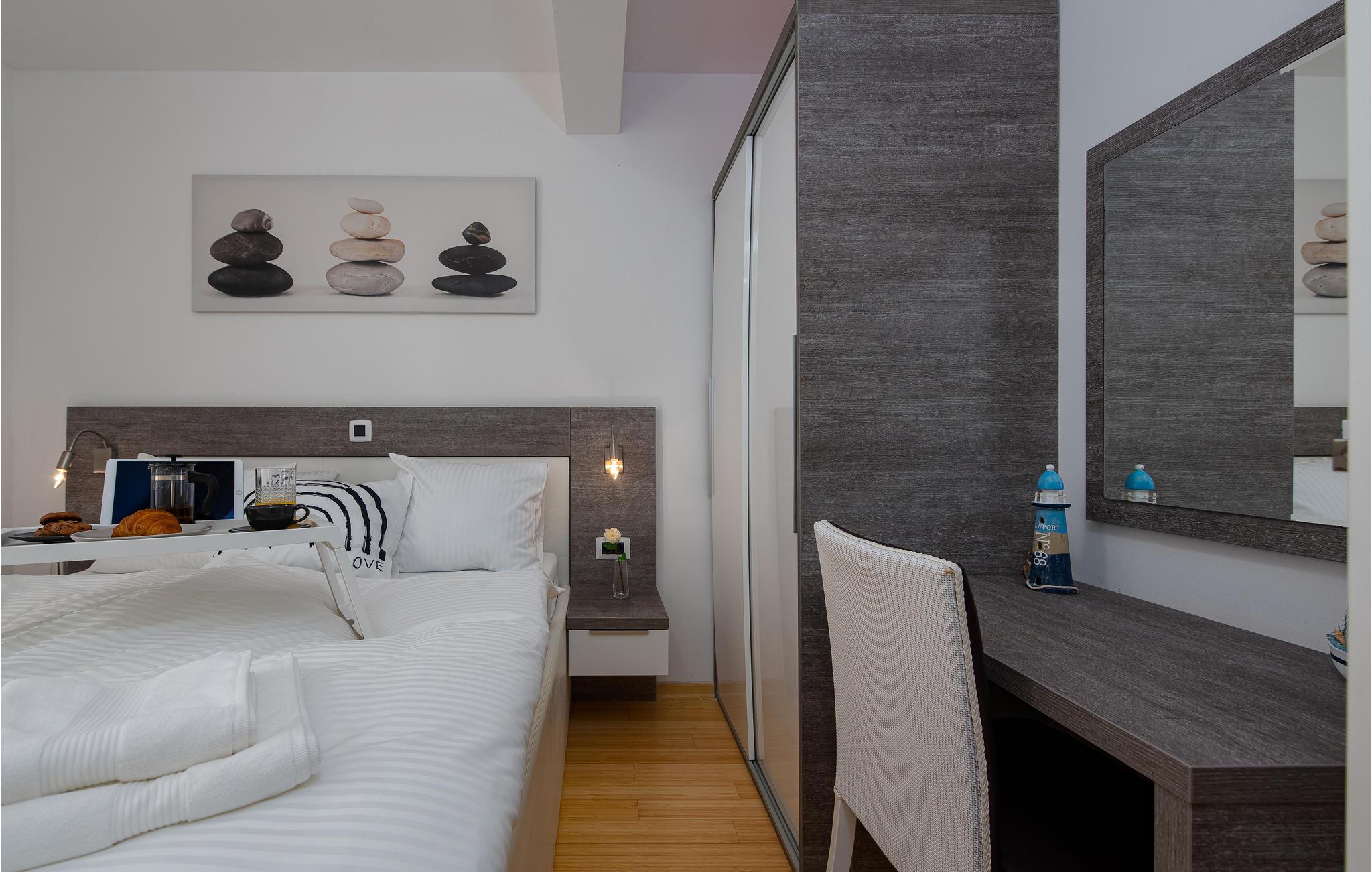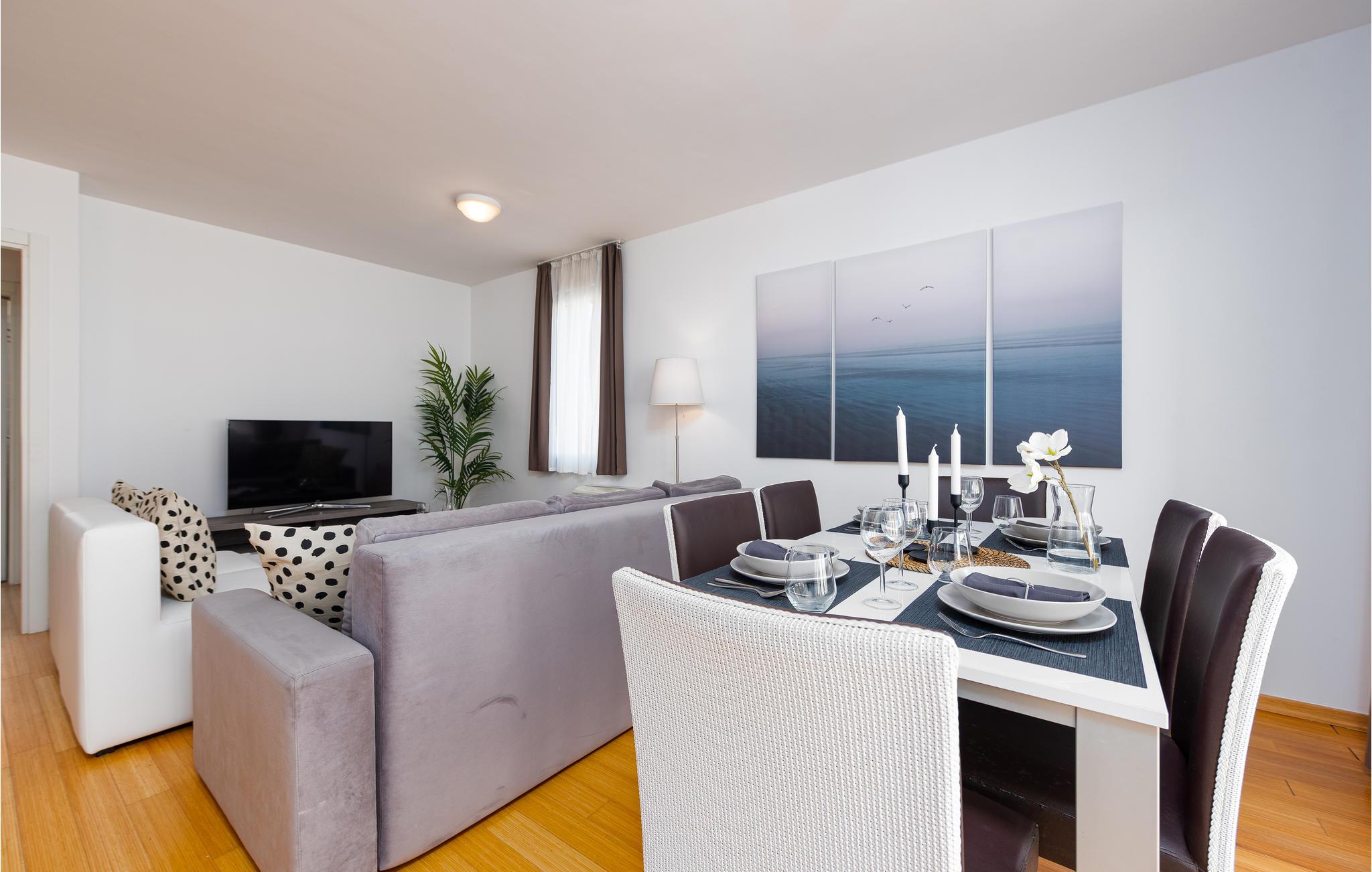 Gå et par skridt til havet og nyd det klare vand på den private strand, hvor I får gratis liggestole til rådighed. Besøg den fascinerende by Zadar, der udover sin fantastiske beliggenhed ved kysten også har mange imponerende historiske bygninger at byde på. Gå en tur gennem Forum Romanum, for eksempel, eller fordyb jer i historien om de tidlige indbyggere i det arkæologiske museum. En næsten perfekt udsigt tilbydes af en gåtur på bymuren. Afslut jeres udflugt på strandpromenaden og bliv fascineret af en spektakulær solnedgang over Adriaterhavet.