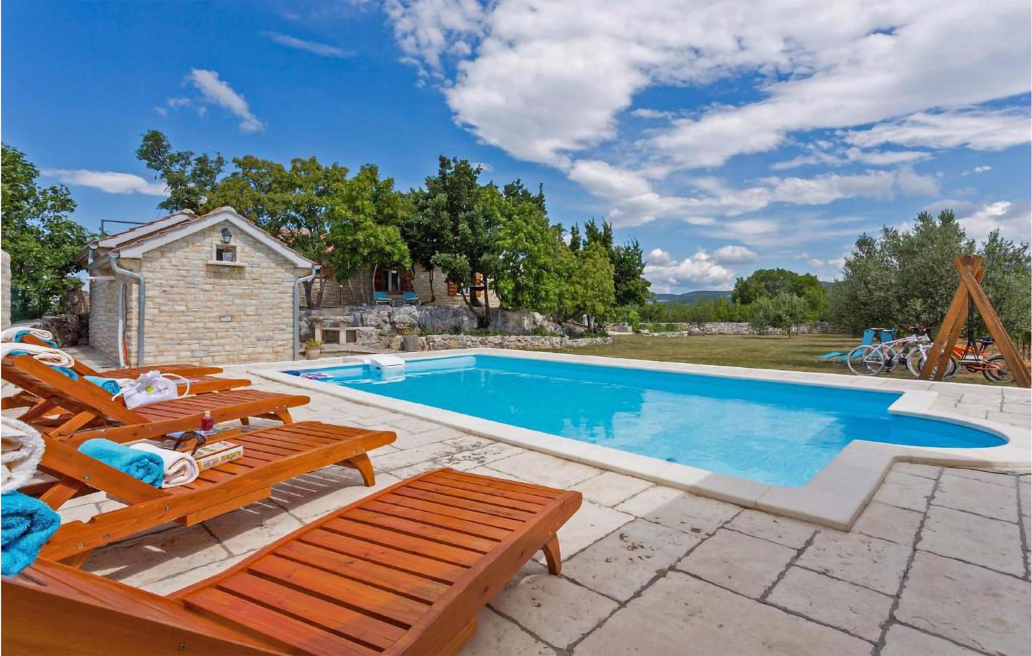 Dette hyggelige feriehus ligger i Popovic, få kilometer fra Karinsko More. Her kan I hygge jer og slappe af i et fuldt udstyret feriehus. Se tv sammen, spil musik eller nyd nogle lange pauser udendørs. Det skyggefulde udendørsområde med ovn og spisebord lægger op til masser af hyggestunder, men højdepunktet vil nok være poolen. Snup en dukkert, når I føler for det, og lad ungerne plaske løs. Nyd solen fra liggestolene, mens børnene har det sjovt med at gynge og lege. I haven er der desuden sauna, hvilket er skønt efter en frisk aftendukkert.