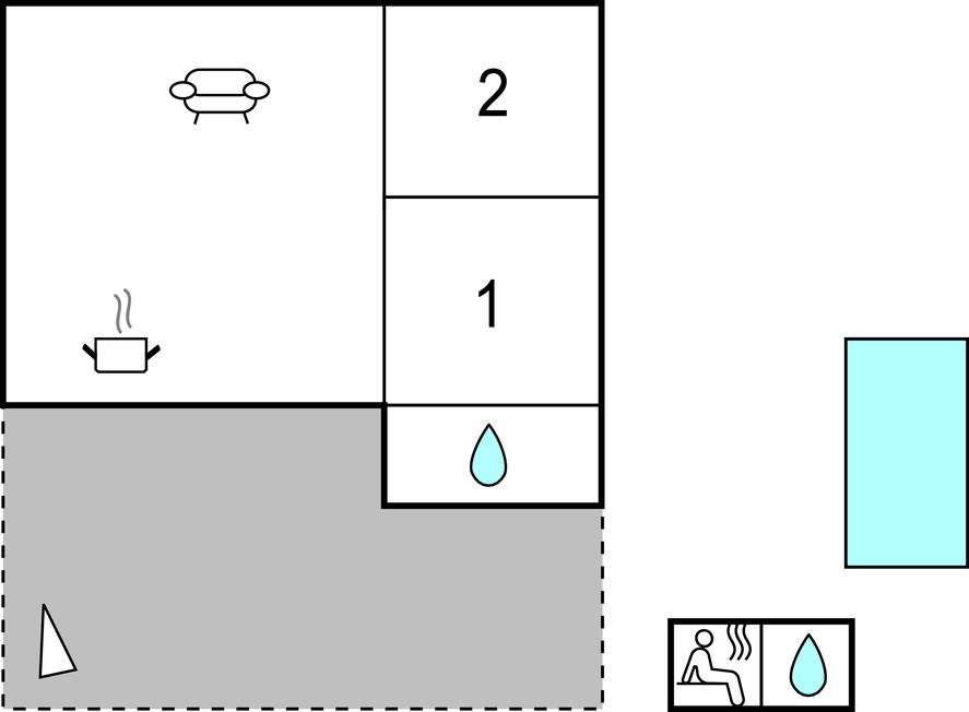 Soveværelse 12m2 (nr. 1) - 1 Soveplads. (Enkeltseng(e)). 2 Sovepladser. (Dobbeltseng(e)).